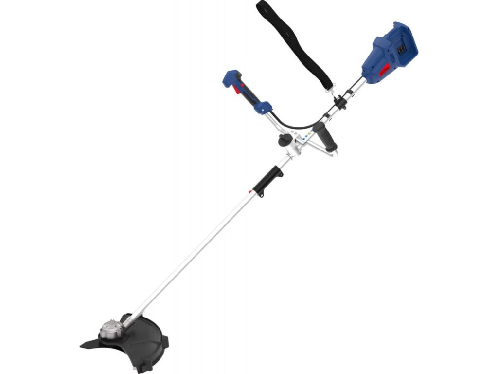 Akumulátorový krovinorez zo série akumulátorového náradia 18V E3 s bezkefkovým motorom nevyžadujúcim údržbu pre vyšší výkon a dlhšiu životnosť. Cievka so strunou, automatický posuv struny klepnutím o zem, nôž na trávu 3-zubý. Nastaviteľná rukoväť na bezpečné dvojručné ovládanie s nízkymi vibráciami, mäkké držadlo. Popruh na prenášanie. Z dvoch dielov pre pohodlné a priestorovo úsporné uskladnenie. Bez akumulátora a nabíjačky (akumulátor a nabíjačka zo série Easy-Energy-Exchange sú k dispozícii samostatne). Na prevádzku sú potrebné dva akumulátory s kapacitou 18 V.