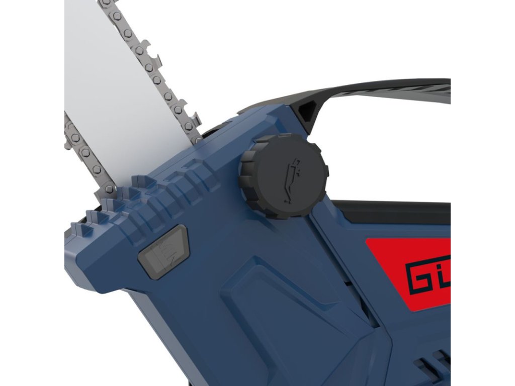 Akumulátorová mini reťazová píla GMK 18-201-05-S je výkonná, mimoriadne šikovná a mnohostranne použiteľná píla na konáre vhodná na orezávanie ovocných stromov, odvetvovanie, ako aj na akúkoľvek starostlivosť o porasty okolo domu a v záhrade. Súčasťou balenia je akumulátor s kapacitou 2,0 Ah, vhodná nabíjačka, ako aj kvalitná vodiaca lišta a vysokokvalitná reťaz s dlhou životnosťou. Systém rýchleho napínania reťaze bez použitia náradia a automatické mazanie reťaze umožňujú efektívnu prácu bez nepríjemných prestávok. Táto malá píla presviedča príjemným pocitom, bezkefkovým a vysokoúčinným elektromotorom s nízkymi vibráciami, ako aj nízkou hmotnosťou pre prácu bez únavy. Horná bezpečnostná rukoväť a chránič rúk poskytujú najlepšiu možnú ochranu pred poranením. Ľahká a praktická akumulátorová mini reťazová píla zo série akumulátorového náradia E3. Bezkefkový motor pre maximálny výkon a dlhšiu životnosť. S olejovou nádržkou na automatické mazanie reťaze. Napínanie a výmena reťaze a vodiacej lišty bez použitia náradia. Ergonomická mäkká rukoväť, bezpečnostná rukoväť s ochranným puzdrom, ochranný kryt reťaze a vodiacej lišty pre bezpečné uloženie. V balení sa nachádza bezpečnostný kryt reťaze, akumulátor 2,0 Ah a nabíjačka 0,5 A zo série Easy-Energy-Exchange E3.