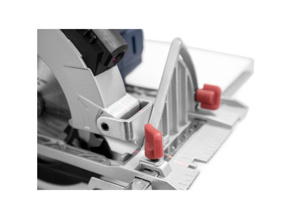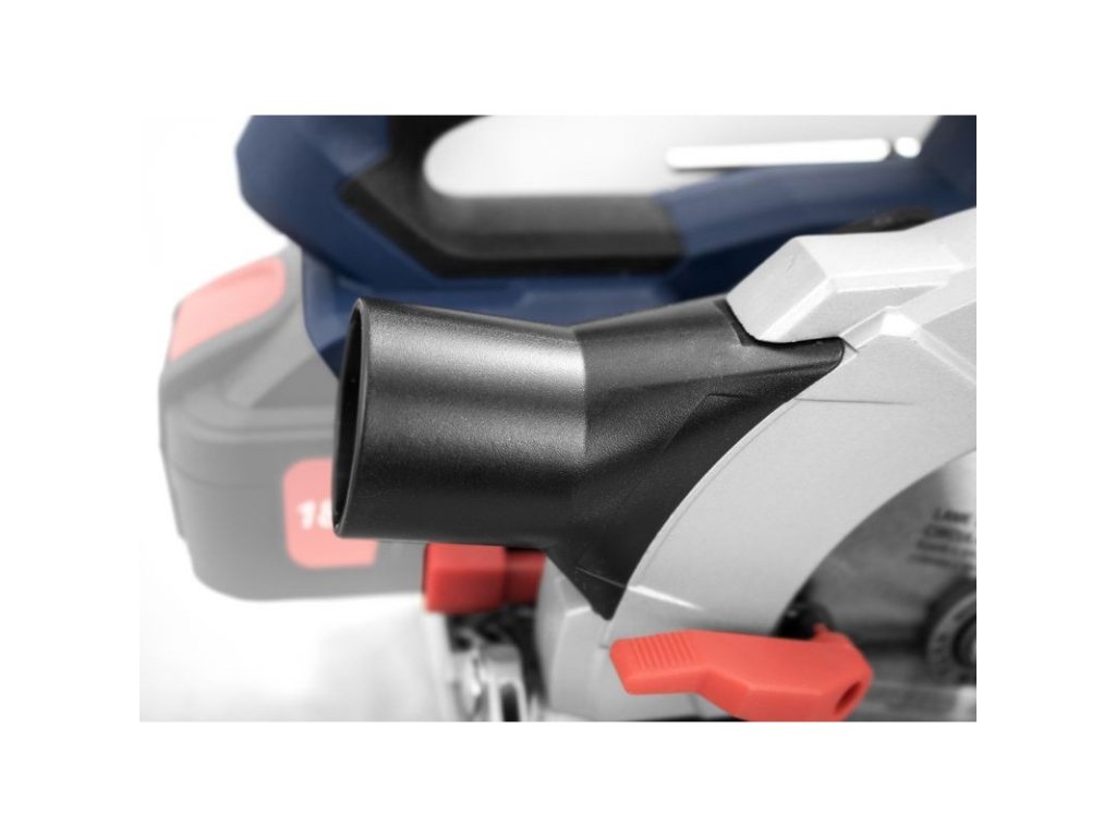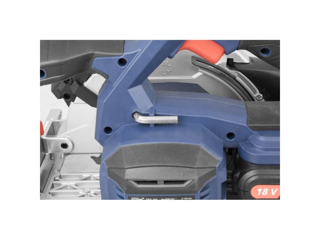Akumulátorová okružná píla zo série akumulátorového náradia 18V e3 na rezanie panelov, drevotrieskových dosák a drevných materiálov. Silný vysoko výkonný motor. Horčíkový ochranný kryt. Laser na presné pozdĺžne rezy. Rýchla, jednoduchá výmena pílového kotúča. Maximálna hĺbka rezu 48 mm pri 90°. Pogumovaná rukoväť pre bezpečnú prácu. Pílový kotúč 150x1,6x10 24Z HM, paralelný doraz. Aretácia vretena, rýchlo stop, ukazovateľ stavu nabitia batérie. Bez batérie a nabíjačky.