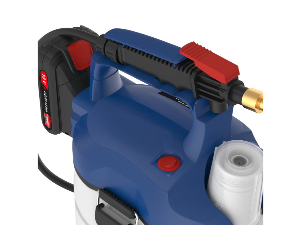 Akumulátorový rozprašovač zo skupiny akumulátorových systémov 18V E3 na použitie okolo domu a v záhrade. Teleskopická rúrka s mosadznou tryskou 46 - 73 cm, odmerka, rukoväť, 110 cm rozprašovacia hadica, 3 l nádoba, nosný popruh, rúrka s aretačným ventilom pre trvalú prevádzku. Vrátane akumulátora a nabíjačky.