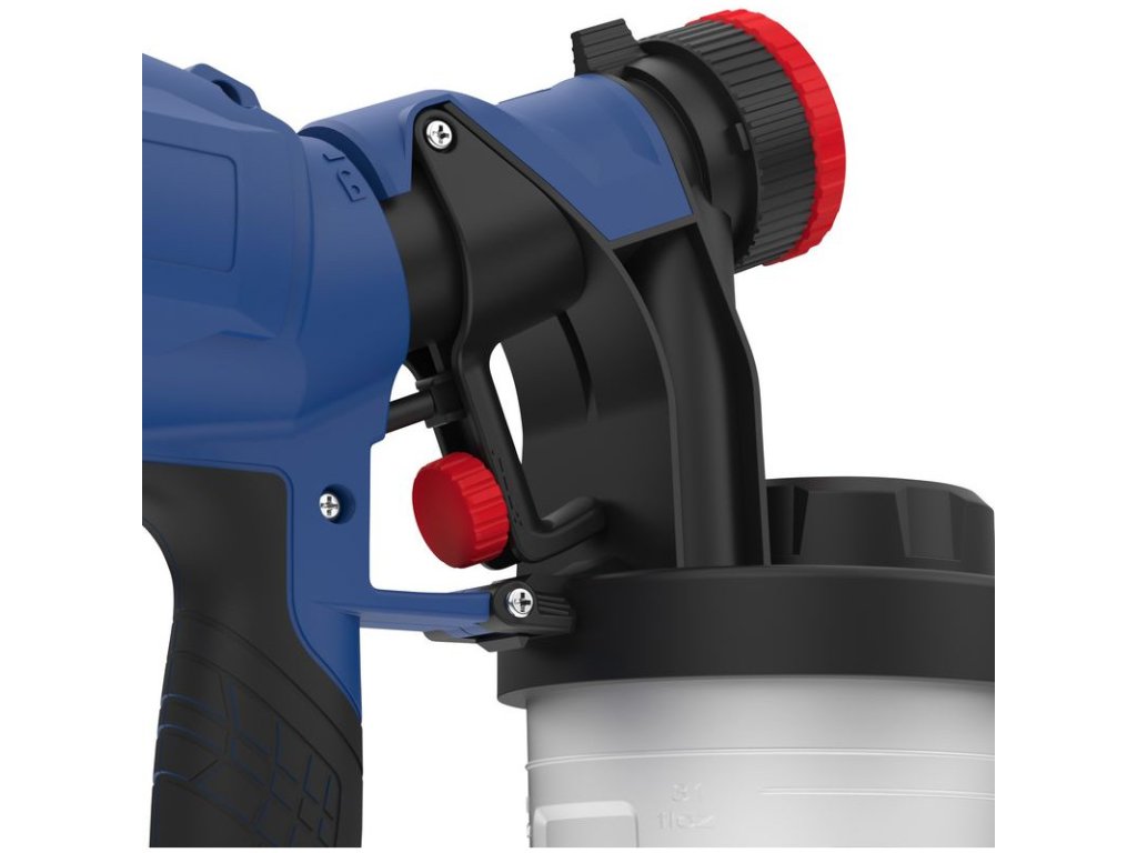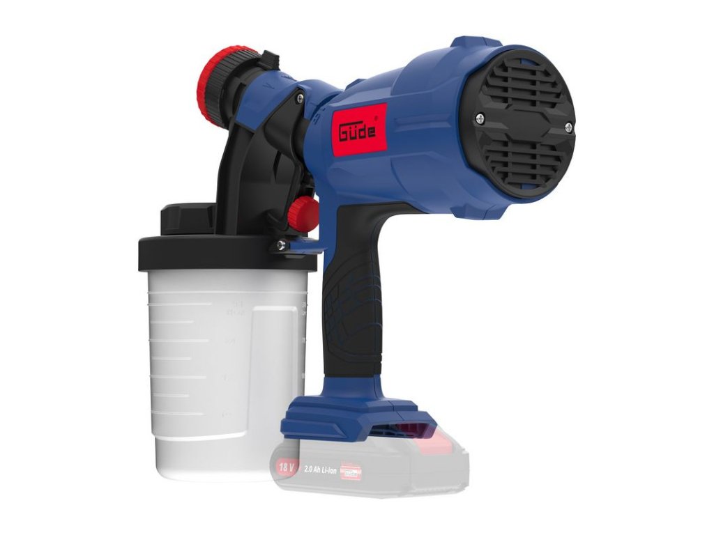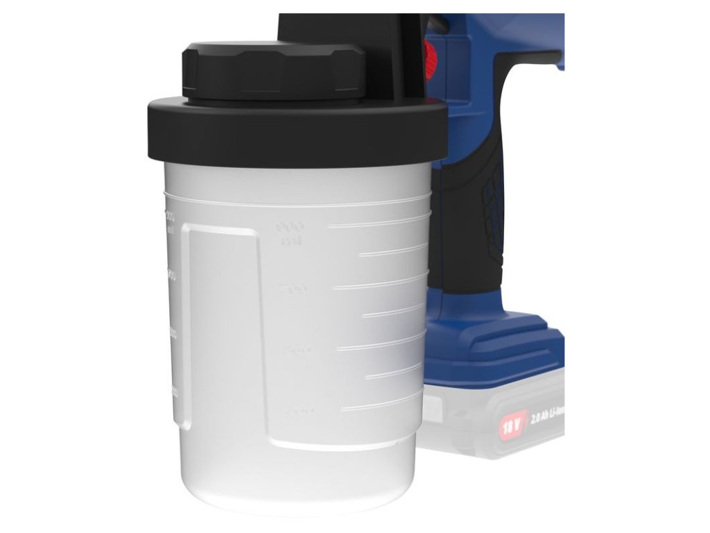 Akumulátorová striekacia pištoľ na farbu zo série akumulátorového náradia 18V E3, vhodná na všetky bežne dostupné farby, laky a glazúry s viskozitou do 60 DIN/sek. Nastaviteľné množstvo farby, rovnomerné nanášanie farby. Striekacie vzory je možné nastaviť nezávisle od dýzy: kruhový nástrek, horizontálny a vertikálny plochý nástrek. Odoberateľná dýzová jednotka pre jednoduché čistenie, 2 dýzy (Ø 2,0 mm / Ø 2,5 mm), veľká, odoberateľná nádoba na farbu s objemom 900 ml, mäkké držadlo, nádoba na meranie viskozity farby, čistiaca kefka, čistiaca ihla, filter. Bez akumulátora a nabíjačky.