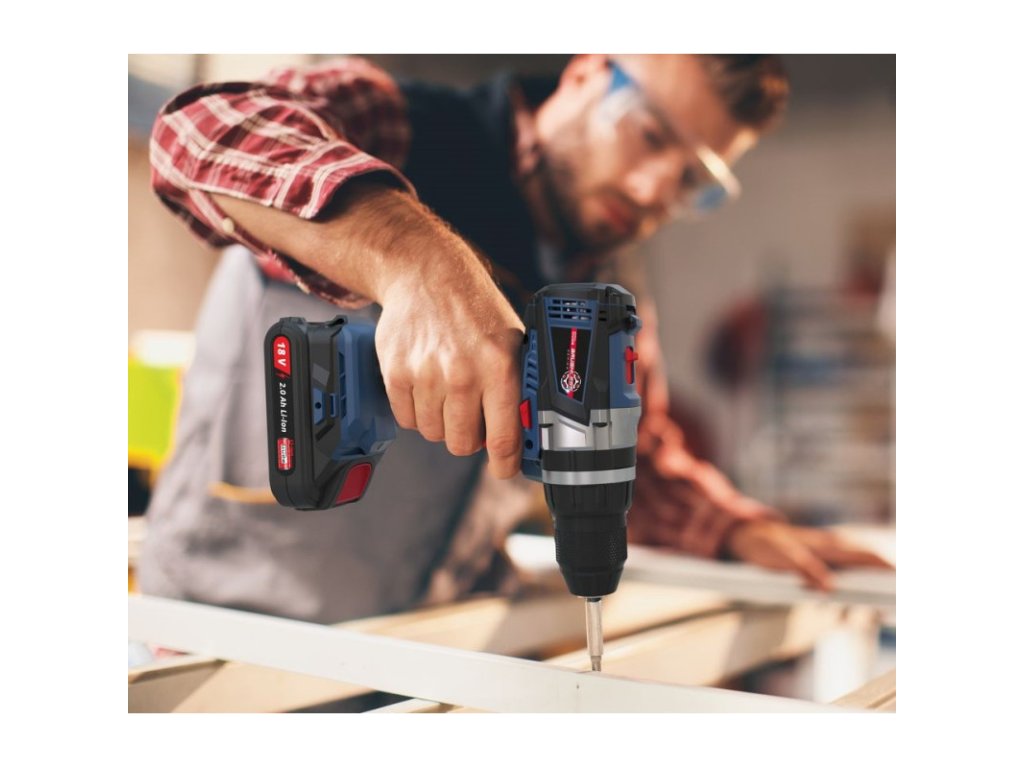 Akumulátorový vŕtací skrutkovač s príklepom zo série akumulátorového náradia 18V E3. Bezkefkový motor pre lepší výkon a dlhšiu dobu chodu. Silný a vysokovýkonný príklepový mechanizmus. Dva prevody pre optimálne využitie výkonu pri rôznych materiáloch. Automatická aretácia vretena, 13-milimetrové kovové rýchloupínacie skľučovadlo s funkciou Auto-Lock. Elektronika s reguláciou otáčok a ochranou proti preťaženiu, ľavý/pravý chod s brzdou motora, 21 stupňov krútiaceho momentu. Pogumovaná rukoväť pre bezpečnú prácu, integrované LED pracovné svetlo. Príklepové vŕtanie, vŕtanie, skrutkovanie. Dodáva sa bez akumulátora a nabíjačky (akumulátor a nabíjačka z akumulátorovej série Easy-Energy-Exchange sú dostupné samostatne).