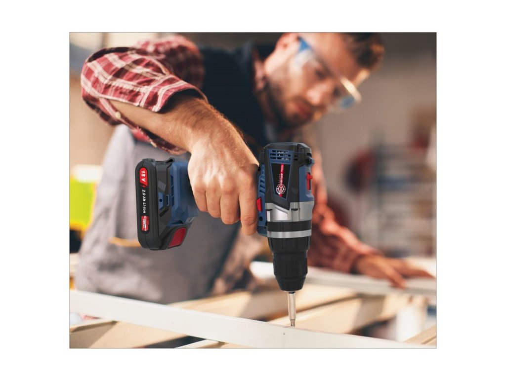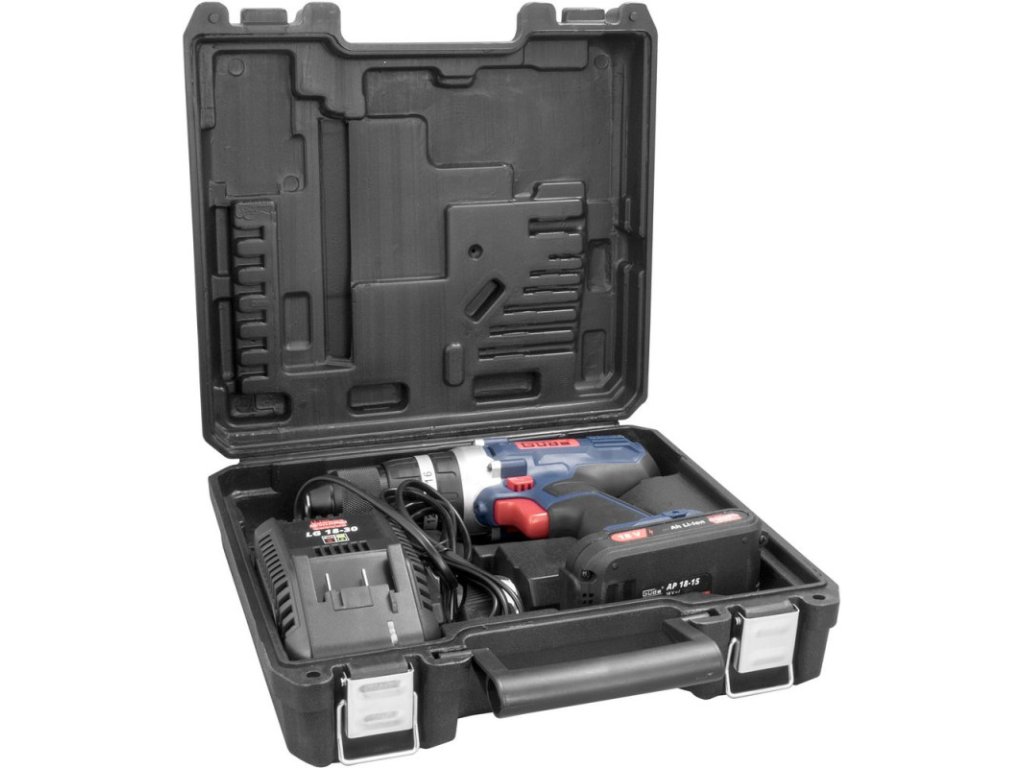 Akumulátorový vŕtací skrutkovač s príklepom zo série akumulátorového náradia 18V E3. Vŕtanie s príklepom, vŕtanie, skrutkovanie. Silný a vysoko výkonný mechanizmus príklepu. Dvojrýchlostná prevodovka pre optimálne využitie výkonu pre rôzne materiály. 13 mm kovové rýchloupínacie skľučovadlo s Auto Lock. Automatická aretácia vretena. Elektronika s reguláciou otáčok a ochranou proti preťaženiu. Pravo/ľavobežný chod s brzdou motora. Integrovaná LED lampa k osvetleniu pracovnej oblasti. 18V / 2,0Ah Lithium Power akumulátor s kontrolou jednotlivých článkov a ochranou voči preťaženiu, rýchlonabíjačka 3,0 A, 13-dielna sada vrtákov a bitov obsahuje: 6x HSS vrtákov (Ø1,5, Ø2,5, Ø3,0, Ø4,0, Ø5,0, Ø6,0), 6x Cr-V bity (Ø5, Ø6, PH1, PH2, PZ1, PZ2), 1x držiak bitov 55 mm - magnetický, kufor s kovovými sponami.