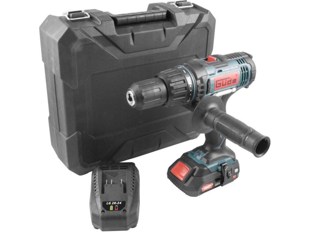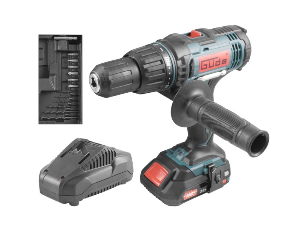 Akumulátorový vŕtací skrutkovač s pravo/ľavobežným chodom, 2 prevodové stupne, rýchloupínacie skľučovadlo 10 mm, automatická aretácia vretena, elektronická regulácia otáčok, 21 stupňov krútiaceho momentu, Softgrip rukoväť, prídavná rukoväť, pracovné LED osvetlenie, signalizácia stavu nabitia. Magnetický držiak bitov, háčik na opasok. Vrátane batérie 2 Ah, rýchlonabíjačky 2,4 A, kufríka a príslušenstva: 6 x HSS vrtáky (Ø 2,0; 2,5; 3,0; 4,0; 5,0; 6,0), 6 x CR-V bity (SL5; SL6; PH1; PH2; PZ1; PZ2), 1 x CR-V bit PZ2 50 mm, 1 x držiak bitov 55 mm magnetický.