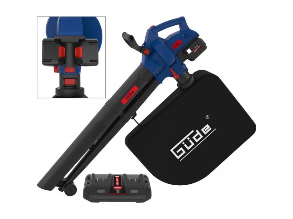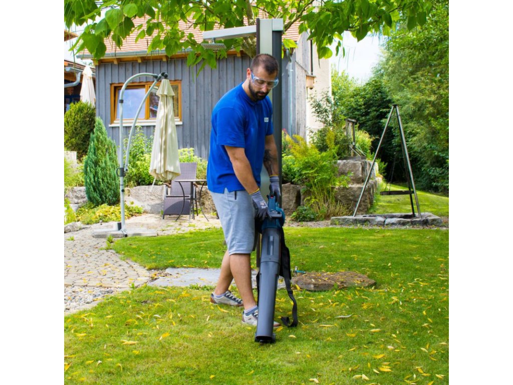 Akumulátorový vysávač lístia zo skupiny akumulátorových systémov 18V E3 na použitie okolo domu a záhrady. Funkcia nasávania, fúkania a drvenia, 45-litrový zberný vak na lístie, variabilne nastaviteľná rýchlosť, nastaviteľný ramenný popruh, prestaviteľná prídavná rukoväť, dve vodiace kolieska. Vynikajúco sa hodí na práce v záhrade, na trávniky alebo chodníky. Vrátane 2 akumulátorov 18V/3,0 Ah a rýchlonabíjačky 72 min.