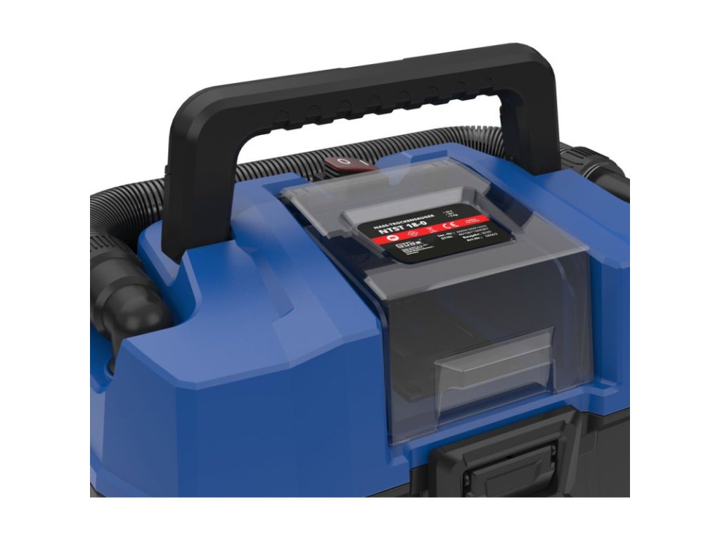 Výkonný akumulátorový vysávač na vysávanie na mokro aj na sucho zo série akumulátorových systémov 18V E3 pre mobilné použitie okolo domu a v záhrade, s funkciou vyfukovania. Nádoba s kapacitou 10 l, hadica s možnosťou vytiahnutia na dĺžku 1,7 m, 4 riadiace kolieska. HEPA filter, penový filter, hubica na vysávanie štrbín, hubica na vysávanie podlahy. Bez akumulátora a nabíjačky.