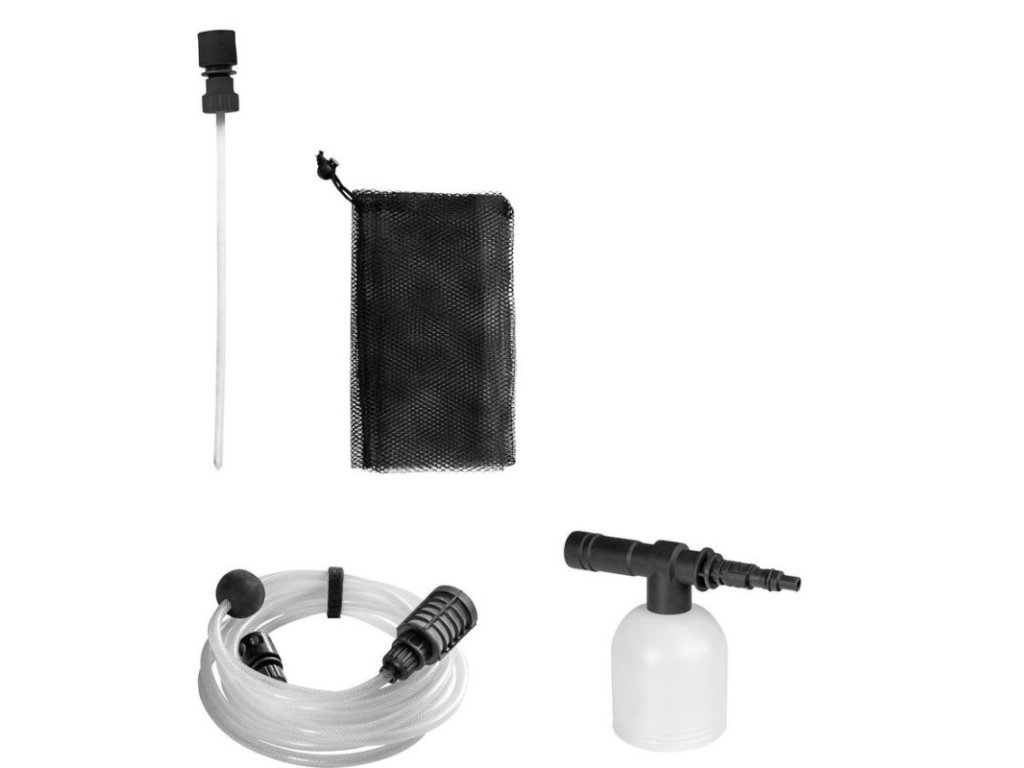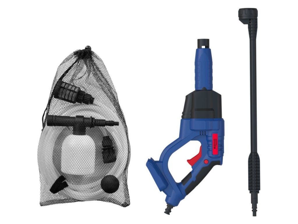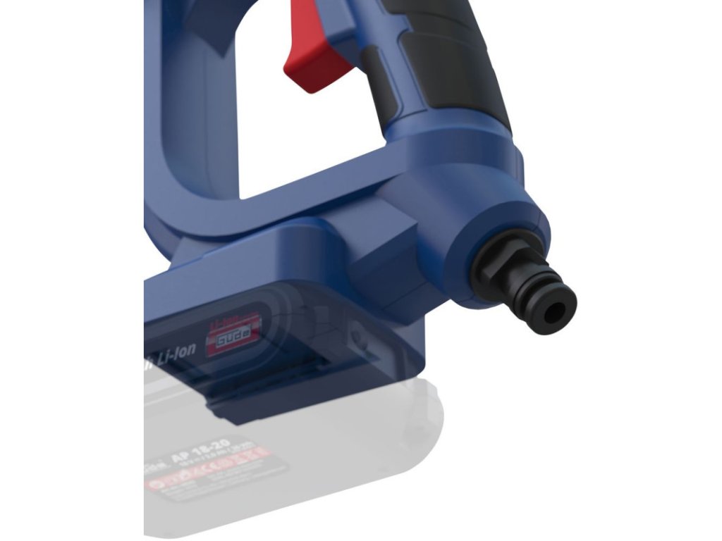 Akumulátorový tlakový čistič zo série akumulátorového náradia 18V E3. Multifunkčná dýza so šiestimi rôznymi funkciami, bezpečnostný spínač zabraňuje neúmyselnému zapnutiu, mäkké držadlo. Samonasávacia funkcia na používanie vody napríklad z cisterny, rybníka alebo z nádoby na dažďovú vodu. Pripojenie rýchlospojkou. Filtračný kôš na nasávacej hadici. Fľaša na čistiaci prostriedok, tlaková hadica 6 m, multifunkčná dýza, vak na uskladnenie, adaptér na pripojenie PET fliaš. Bez akumulátora a nabíjačky (akumulátor a nabíjačka zo série Easy-Energy-Exchange sú k dispozícii samostatne).