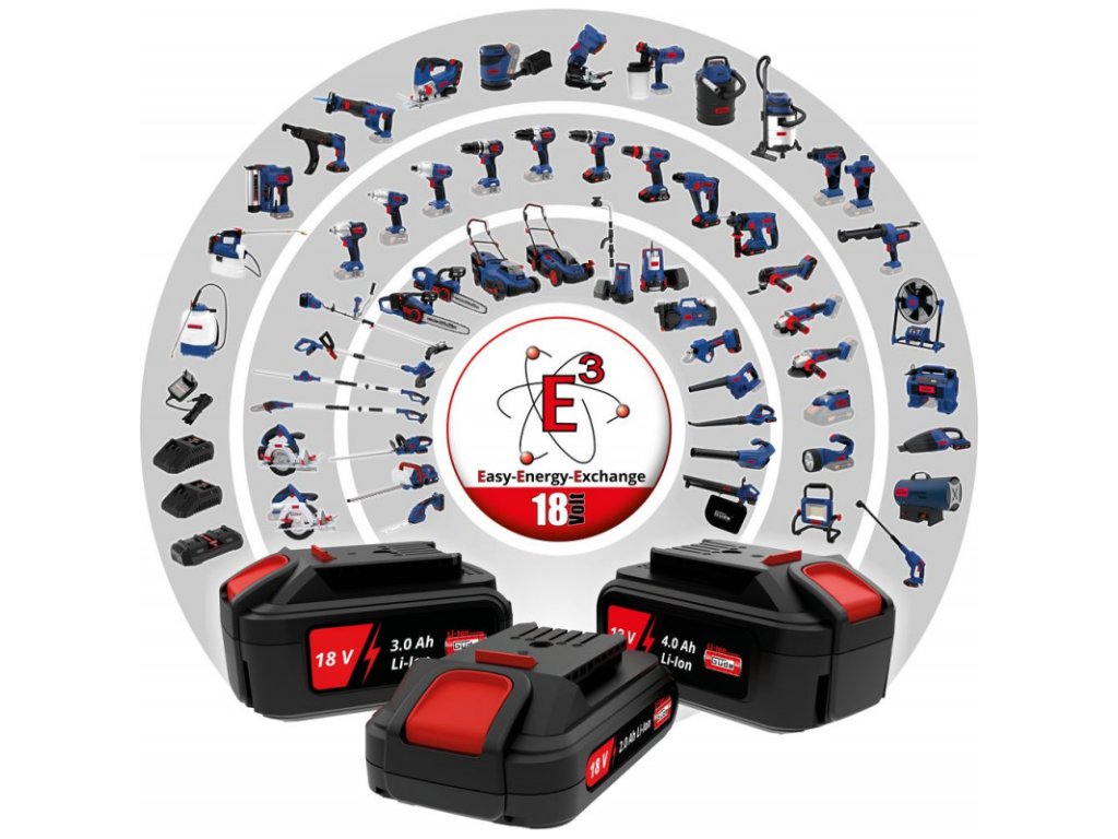 Akumulátorová súprava pre starostlivosť o záhradu zo série akumulátorových systémov 18V E3. Mäkká rukoväť, bezpečnostný vypínač. Rýchla výmena násad bez použitia náradia. Násada na strihanie trávy, násada na strihanie živých plotov a kríkov, násada na hrabanie. Vrátane akumulátora s kapacitou 2 Ah a nabíjačky.