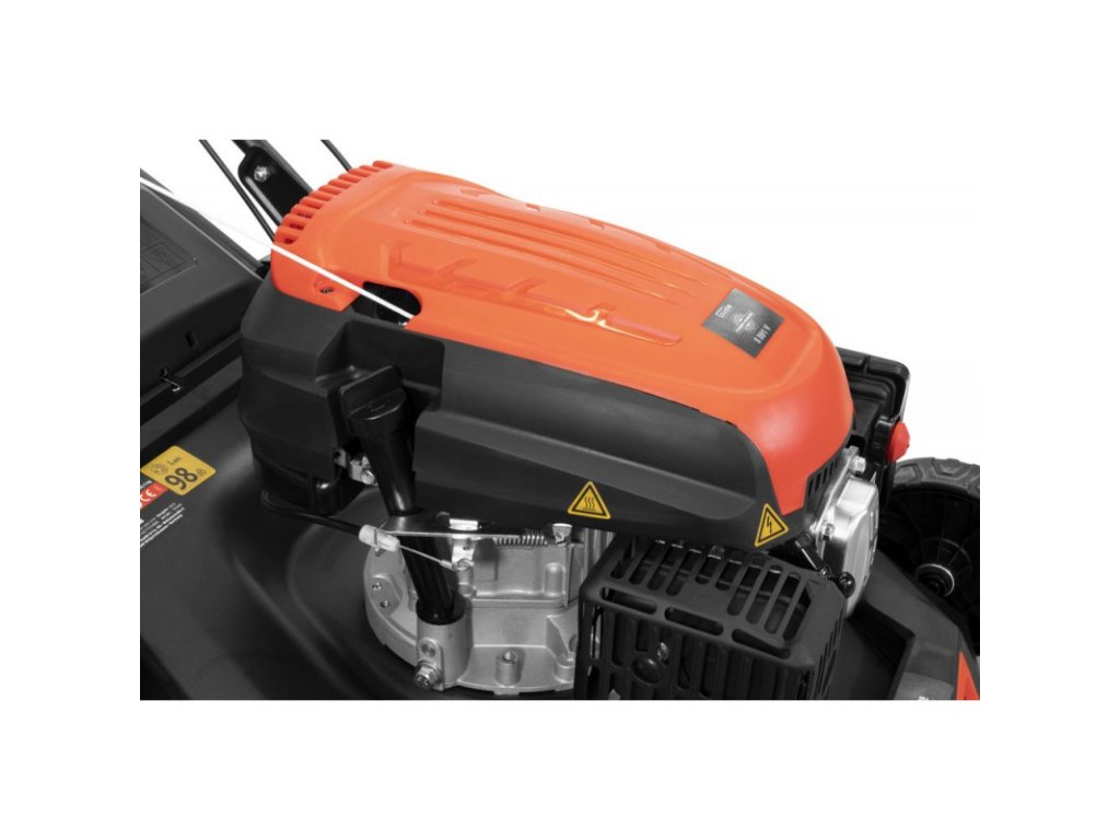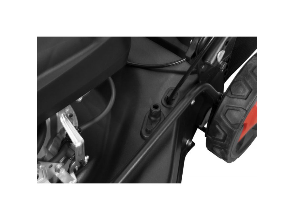 Kosačka s výkonným štvortaktným motorom, štartovanie bez námahy vďaka reverznému štartu, ergonomicky tvarovaná rukoväť s dvojpolohovým nastavením výšky. Podvozok z oceľového plechu s práškovým nástrekom. Sedempolohové centrálne nastavenie výšky kosenia. Zberný vak na trávu s objemom 60 l s ukazovateľom stavu naplnenia. Palivové čerpadlo Primer. Pohon zadných kolies na guľôčkových ložiskách prostredníctvom plynule prepínateľného prevodového stupňa, bočné vyhadzovanie, prípojka na čistenie. Na kosenie trávnika s plochou do 1800 m2.