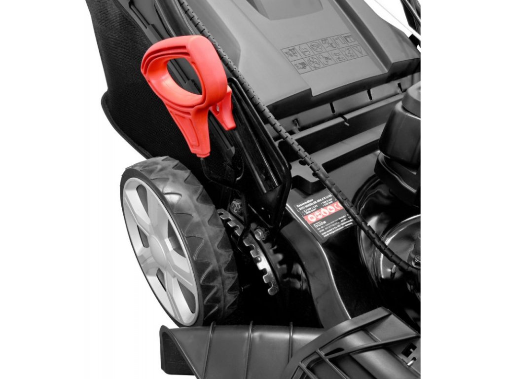 Benzínová kosačka so 4-taktným motorom Power Engine. Elektrický štart pomocou akumulátora Li-Ion, reverzný štart. Ergonomicky tvarovaná rukoväť, 8-polohové centrálne nastavenie výšky kosenia, 62-litrový zberný kôš. Podvozok z oceľového plechu s povrchovou úpravou práškovaním. Kolesá uložené na guľôčkových ložiskách, mulčovací klin, bočné vyhadzovanie. Pohon zadných kolies s prevodom pre ľahký chod. Funkcia kosenia, zberu, mulčovania a bočného vyhadzovania. Na trávniky s plochou do 1400 m2.