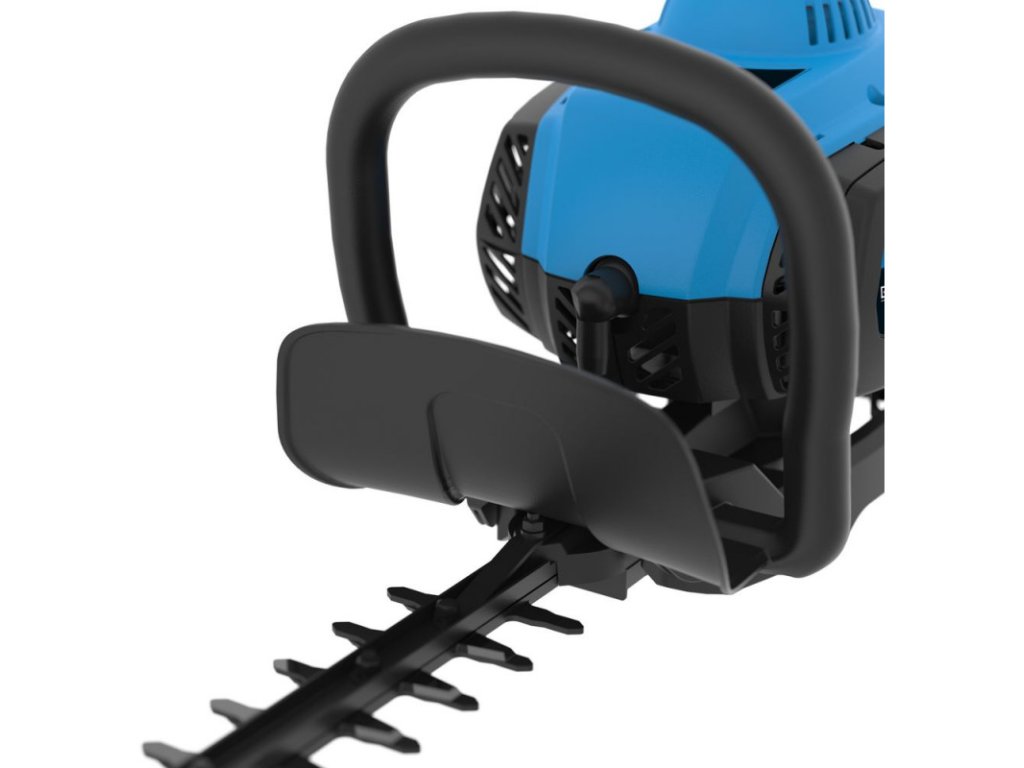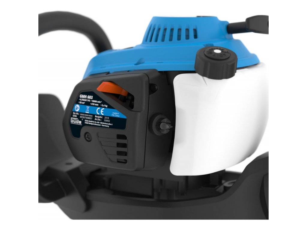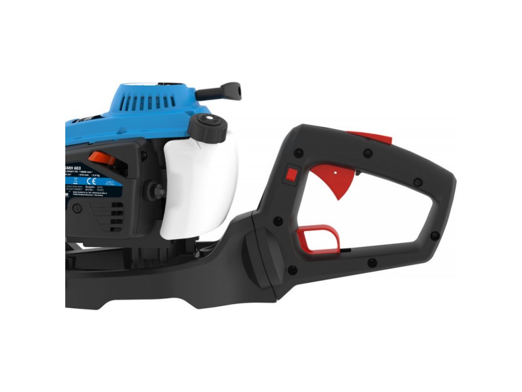 Benzínové nožnice na živý plot s 2-taktným OHV motorom, reverzným štartom, palivovou pumpou. Protibežné laserom opracované a diamantom ostrené nože, trojbodový antivibračný systém, prídavná rukoväť s tlmením vibrácií, funkčná rukoväť, otočná o 180°, ochrana rúk, kľúč od nádrže a na sviečky.