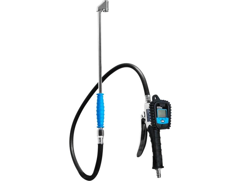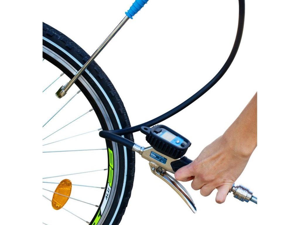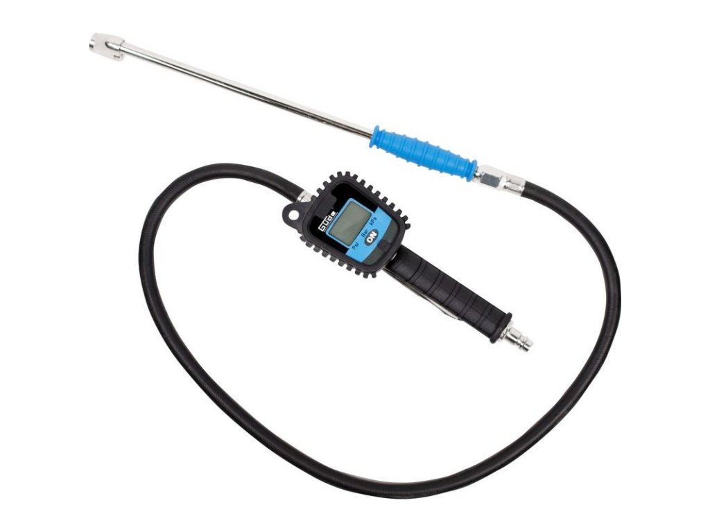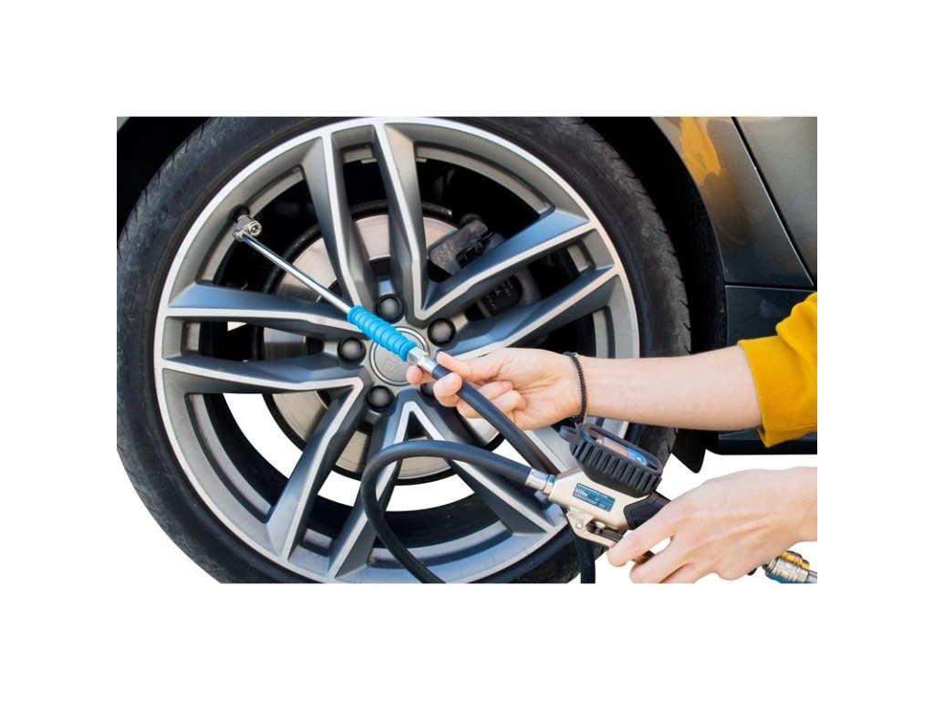Hustilka s digitálnym displejom s gumovou manžetou, na kontrolu tlaku vzduchu a plnenie pneumatík. Nastavenie jednotky tlaku v BAR/PSI/KPa. Kalibrovateľná, pogumovaná rukoväť, presne nastaviteľný tlakový poistný ventil. Gumová hadica s pochrómovanou zátkou ventilu Michelin. Vrátane predĺženia s dvojitým ventilovým konektorom. Batéria (CR 2032).