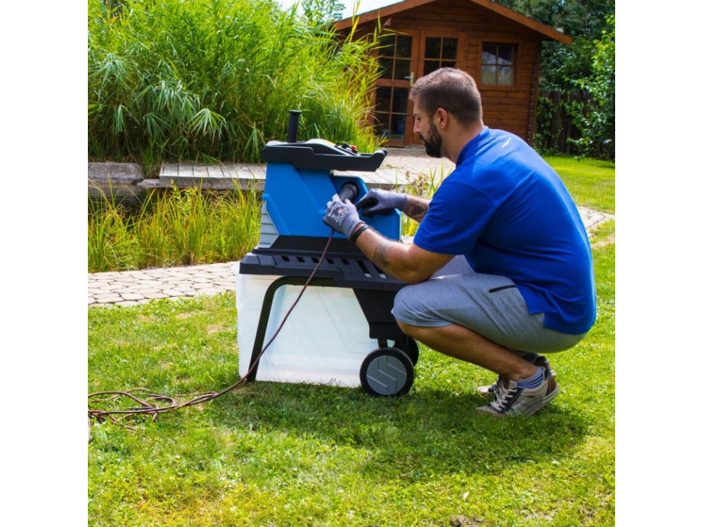 Výkonný drvič s tichým chodom určený na drvenie záhradného odpadu pomocou valcov. Indukčný motor, funkcia spätného chodu, veľký 55 l zberný box, pevný podstavec s transportnými kolesami, ochrana proti striekajúcej vode.