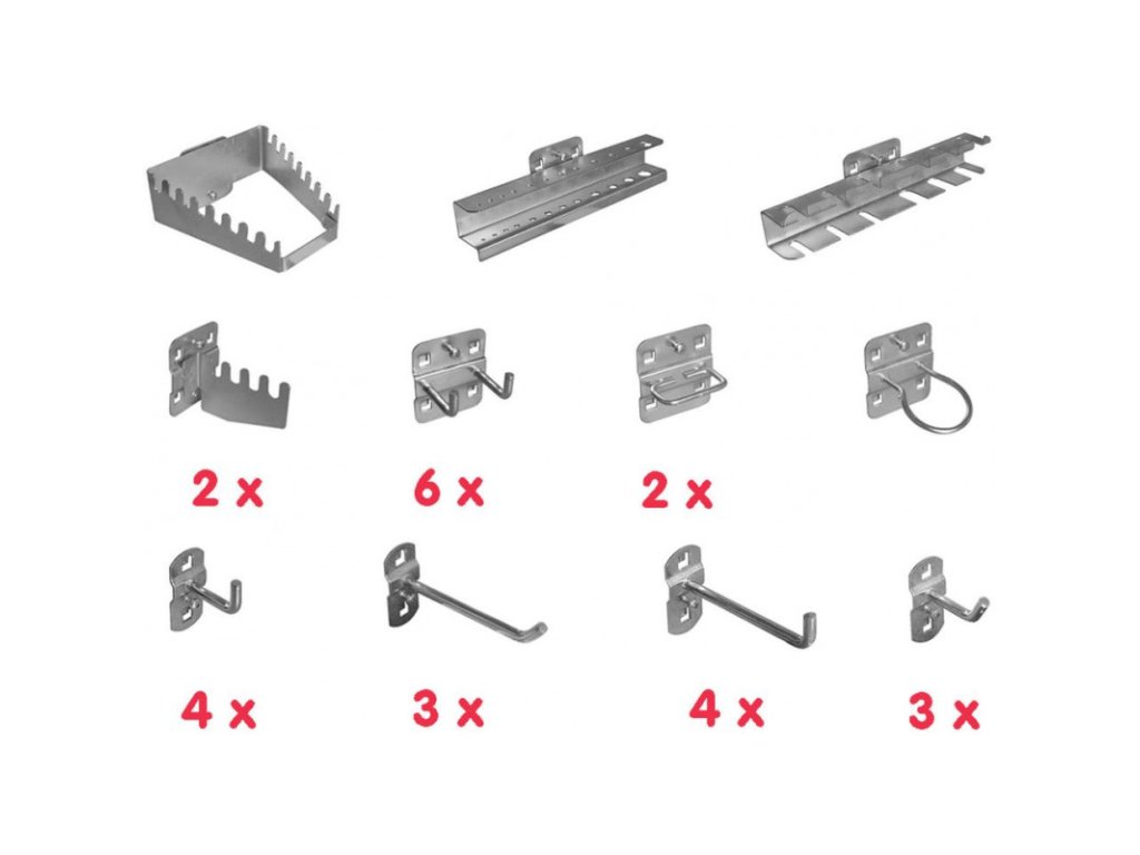 Držiaky na náradie do perforovanej steny, 28-dielna sada