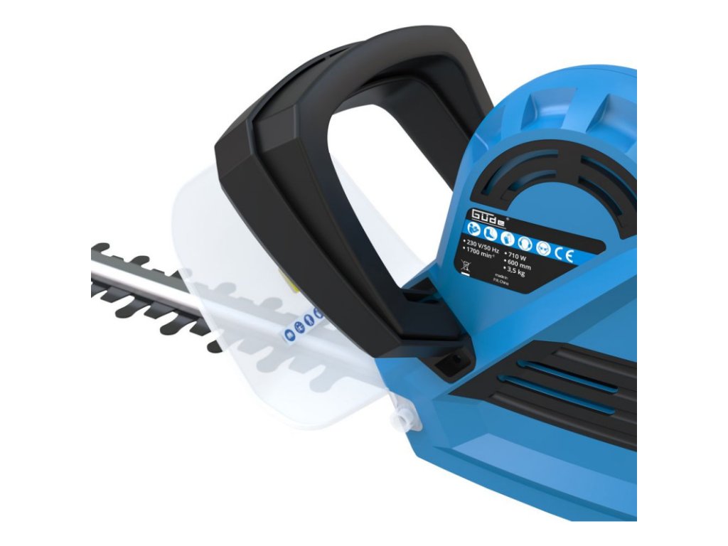Elektrické nožnice pre starostlivosť o živé ploty, kríky a kry na veľkých pozemkoch a záhradách. Obojručný bezpečnostný spínač, protibežné diamantom brúsené, laserom rezané nože. Rýchle zastavenie noža, ochrana lišty, ergonomická 5-smerná otočná rukoväť. Kovové prevody, odľahčenie ťahu kábla, ochrana proti nárazu s držiakom pre montáž na stenu.