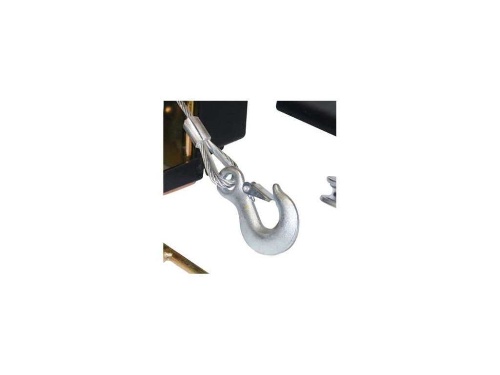 Navijak vhodný na trvalú inštaláciu alebo na montáž na spojku prívesu pomocou adaptéra. Funkcia voľnobehu, ovládací kábel 3 m, napájací kábel 4,5 m, ručná kľuka, kladka, rukoväť, doska adaptéra.