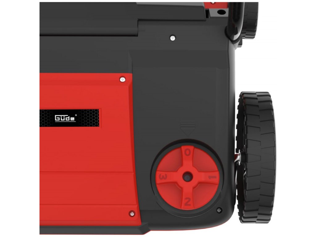 Elektrický vertikutátor a prevzdušňovač s bezpečnostným spínačom, sklopná vodiaca rukoväť, kolesá s ľahkým pojazdom, 4-polohové centrálne nastavenie výšky (-12 / -8 / -4 / +3 mm), odľahčenie kábla od ťahu. Nožový valec na vertikutáciu, prevzdušňovací valec.