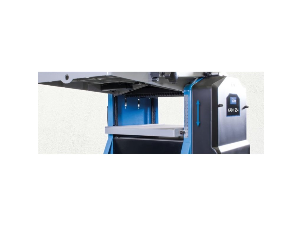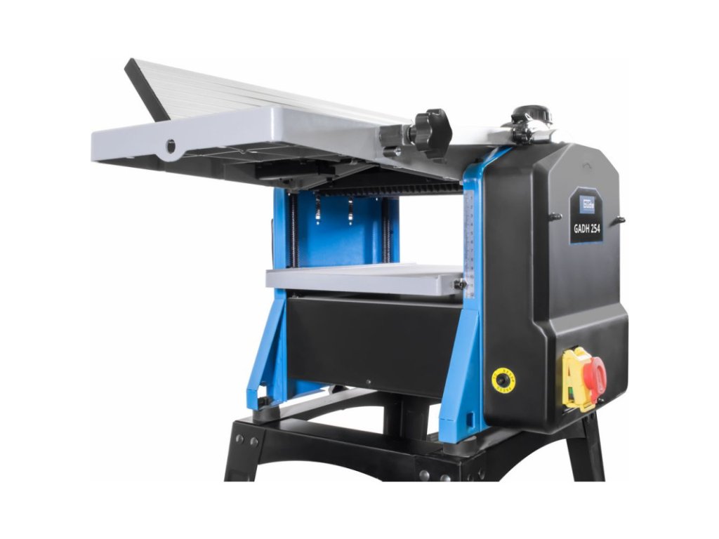 Kombinovaný drevoobrábací stroj (hobľovačka - zrovnávačka) s hobľovacími stolmi z tlakovo liateho hliníka (presné a jemne frézované). Paralelný doraz je možné plynule nakláňať 0°-45°. Nastavenie hrúbky stola ručným kolieskom 6 - 120 mm. Prípojka pre systém odsávania pilín. Nástroj na výmenu nožov. Ochrana hobľovacieho vretena. Bezpečnostný spínač s odpojením elektrického napätia. Spínač preťaženia, posuvná tyč, 4 nohy z ocele. Nožový hriadeľ s 2 hobľovacími nožmi HSS.