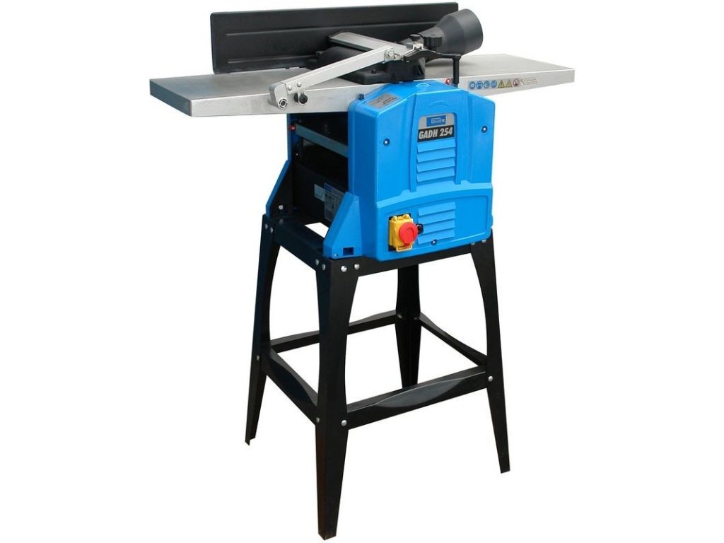 Stoly zrovnávačky z tlakovo liateho hliníka (jemne frézované do presnej roviny), nastavenie hrúbky ručným kolieskom, paralelný doraz so sklonom 0° - 45°, otočná vodiaca zarážka, prípojka pre odsávanie pilín. Nástroj na výmenu nožov, kryt vretena. Bezpečnostný spínač s ochranou nulového napätia, istič, posuvná tyč. Štyri oceľové nohy, hriadeľ čepele s 2 hobľovacími nožmi HSS.
