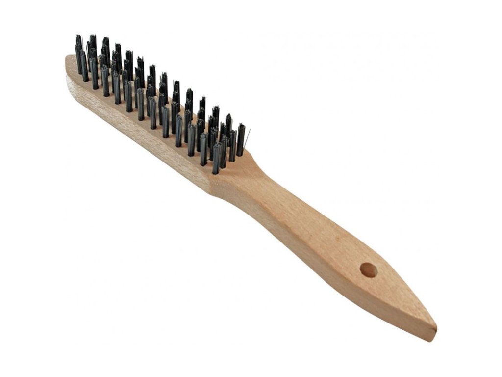 Drôtená kefa s drevenou rukoväťou na čistenie zvarov.