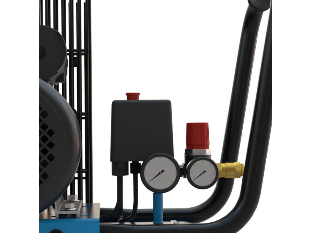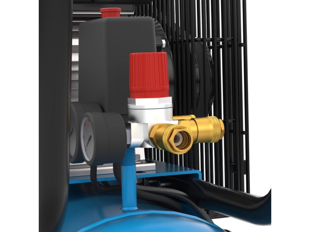 Kompresor 415/10/50 má dvojvalcový agregát s olejovým mazaním a remeňovým pohonom pre dlhú životnosť. Tlakový spínač umožňuje jednoduchú kontrolu pracovného tlaku, ktorý je monitorovaný dvoma manometrami (manometrom na meranie tlaku v nádobe a manometrom na meranie pracovného tlaku). Okrem toho má dve spojky na stlačený vzduch, ventil na redukciu pracovného tlaku a bezpečnostný ventil so spätnou klapkou. Skrutka na vypúšťanie kondenzátu uľahčuje údržbu, zatiaľ čo vzduchový filter udržuje čistý vzduch. Ochrana proti preťaženiu zaisťuje bezpečnú prevádzku. Prepravná rukoväť uľahčuje jeho premiestňovanie. Stabilné plastové kolieska, dvojitá noha s gumovým tlmičom zaisťuje bezpečné státie. Výkonný univerzálny stroj pre mnohé aplikácie.