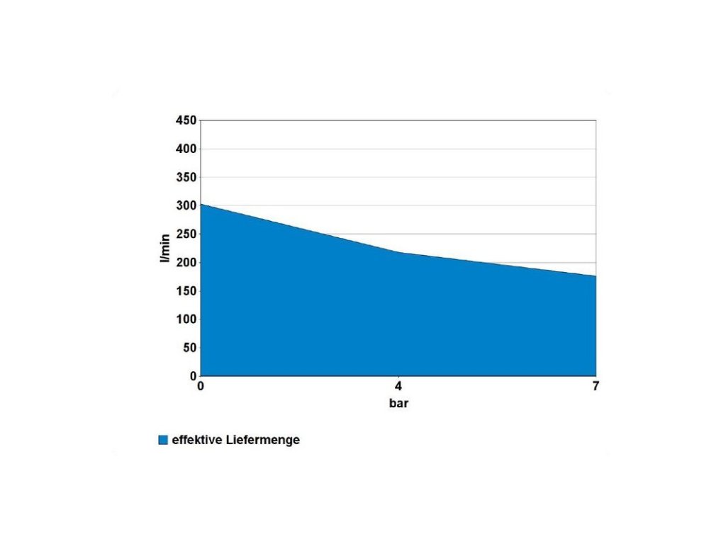 Skutočné dodávané množstvo pri 0 bar: 303 l/min.