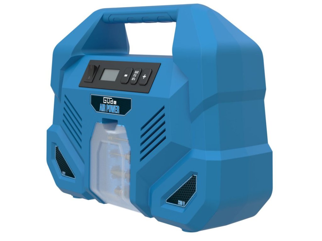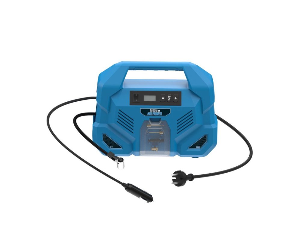 Mobilný kompaktný kompresor, bezolejový a bezúdržbový, s napájaním 12 V a 230 V. Rukoväť na prenášanie pre jednoduchú prepravu, hadica na stlačený vzduch s dĺžkou 0,6 metra, príslušenstvo a kábel uložené všetko v jednom, priehradka na malé komponenty, viaceré dýzy pre rôzne aplikácie. Vhodný na nafukovanie pneumatík automobilov, motocyklov, bicyklov, nafukovacie matrace, lopty a mnoho ďalších predmetov.