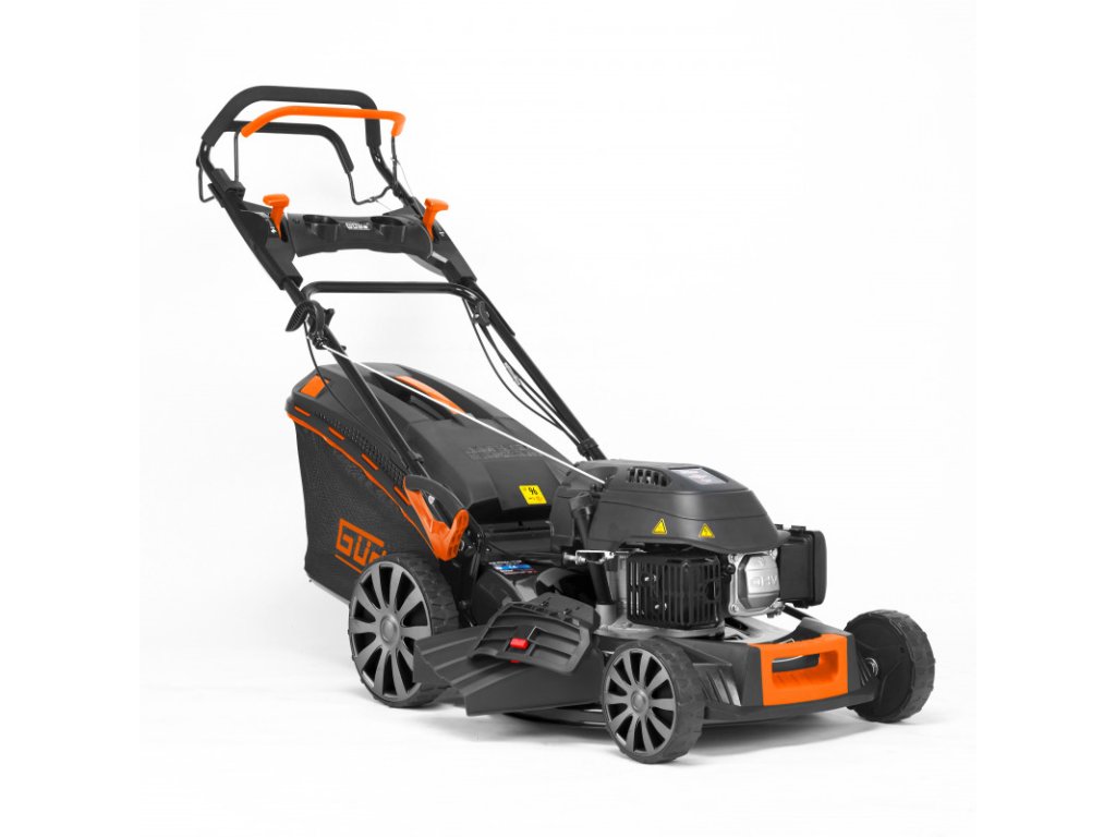 Najštýlovejšia kosačka s pojazdom zo série PREMIUM 2020 značky Güde so záberom 480 mm, centrálnym nastavením výšky kosenia, mulčovacím nožom, mulčovacou záslepkou a bočným vyhadzovaním. Kosačka má mohutný a pevný lakovaný oceľový skelet, penové rukoväte, sytičovú klapku a reguláciu otáčok na madle. Pre zvýšenie pohodlia pri práci dopomáhajú veľké kolieska uložené na ložiskách, ktoré majú puklice z oboch strán, čím sa zabráni zachytávaniu pokosenej trávy do kolies a následnému problému s čistením. Zároveň však zostávajú štýlové a dopĺňajú celkový dojem kosačky. Kosačka má zároveň na madlách priestor na odkladanie nápoja, alebo iných drobných predmetov. Pojazd kosačky je zabezpečený prepracovanou prevodovkou, ktorá je úplne zakrytovaná vrátane náhonového remeňa. Čistenie noža a vnútornej časti skeletu je jednoduché vďaka rýchlospojke na pripojenie záhradnej hadice.