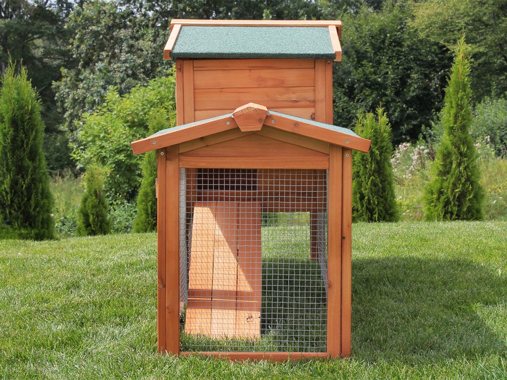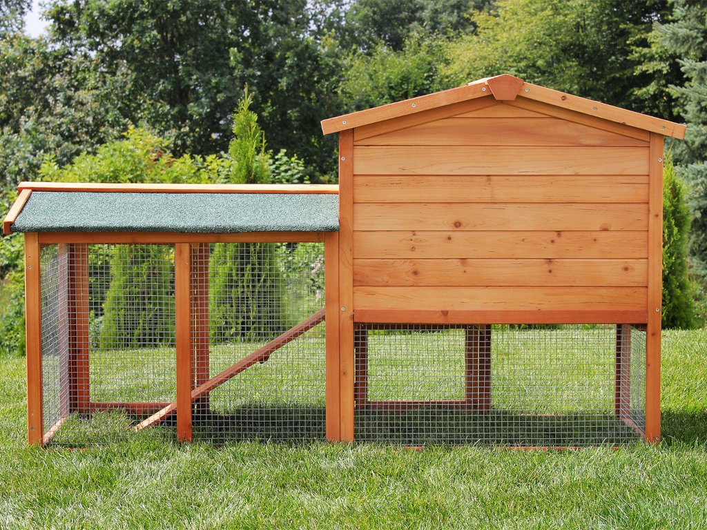 Strecha z borovicového dreva je pokrytá asfaltovou lepenkou, ktorá chráni pred vetrom i dažďom. V prípade potreby ju ľahko zložíte a získate úplný prístup do interiéru – ideálne pri čistení alebo pri kontakte so zvieratami.