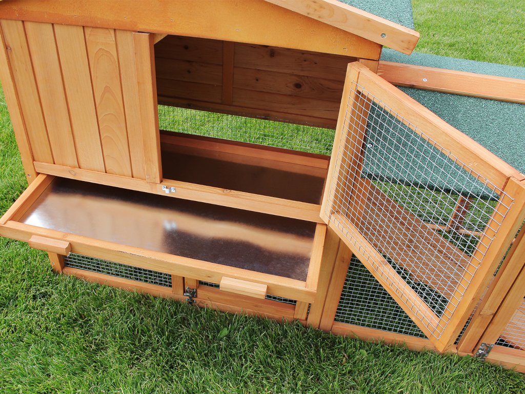 Králikáreň je vybavená zásuvkou vystuženou plechom, ktorú jednoducho vysuniete a odstránite nečistoty. Udržiavať čistotu je vďaka tomu rýchle a pohodlné – ideálne pre zdravie vašich miláčikov a čistotu záhrady.