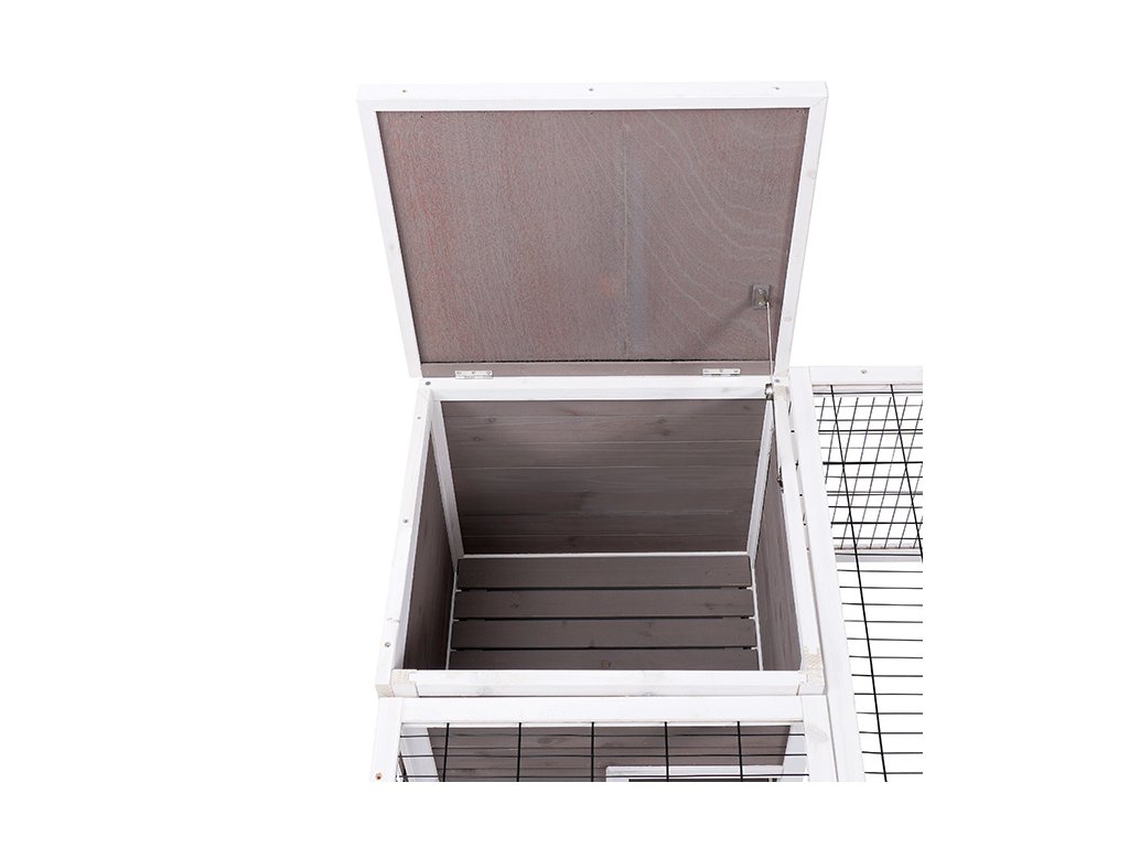 Králiky sa tiež chcú z času na čas ukryť. Aj na to má MyAnimal Rabbit Hutch MH-08 riešenie. S integrovaným domčekom, do ktorého sa môžu zvieratá v prípade potreby stiahnuť. Samotný domček je vyrobený z kvalitného borovicového dreva a ponúka tak králikom najlepšiu možnú ochranu pred poveternostnými vplyvmi. Ale aj od akýchkoľvek predátorov. Tip: Pre väčšie pohodlie v králikárni použite podstielku, ktorá zvieratkám ponúka nielen teplo, ale pôsobí aj ako materiál na stavbu hniezda.