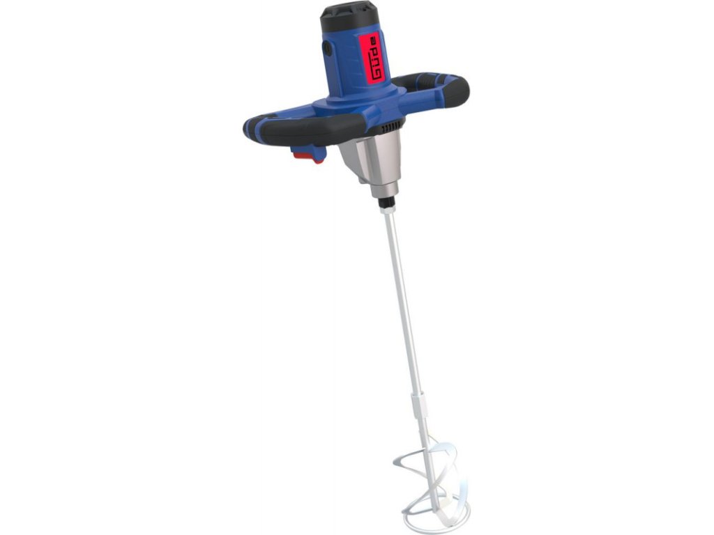 Profesionálne a výkonné miešadlo určené na premiešavanie malty, farby a na miešanie práškových stavebných materiálov, ako sú farby a disperzie. Vysoký komfort pri práci vďaka ergonomickému telesu s protišmykovou pogumovanou rukoväťou. Robustná kovová prevodová skrinka, elektronická regulácia otáčok v rukoväti pre rýchle a presné nastavenie rýchlosti miešania. Dvojrýchlostná prevodovka. Funkcia Soft-Start zaisťuje pozvoľné spustenie miešacieho nadstavca. Vysokokvalitný kábel s gumovou izoláciou (H07RN-F) dlhý 3,7 metra. Motorová jednotka, miešací nadstavec na hrubozrnné stavebné materiály ako malta, omietka alebo lepidlo, miešací nadstavec na jemnozrnné stavebné materiály ako farby a disperzie.