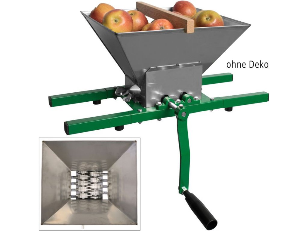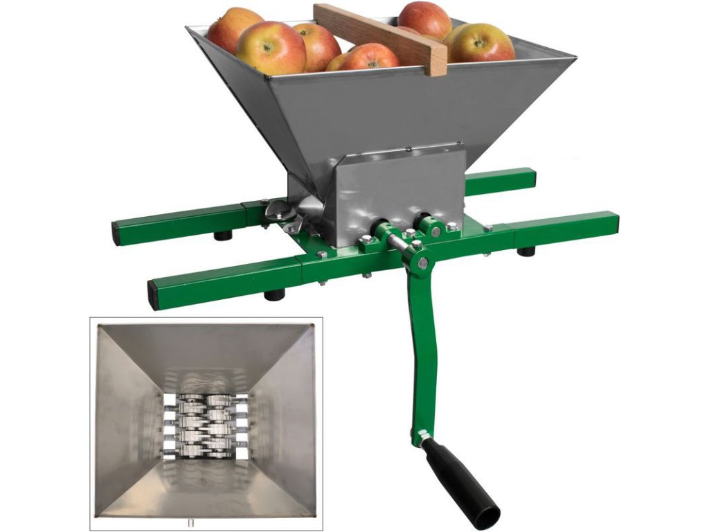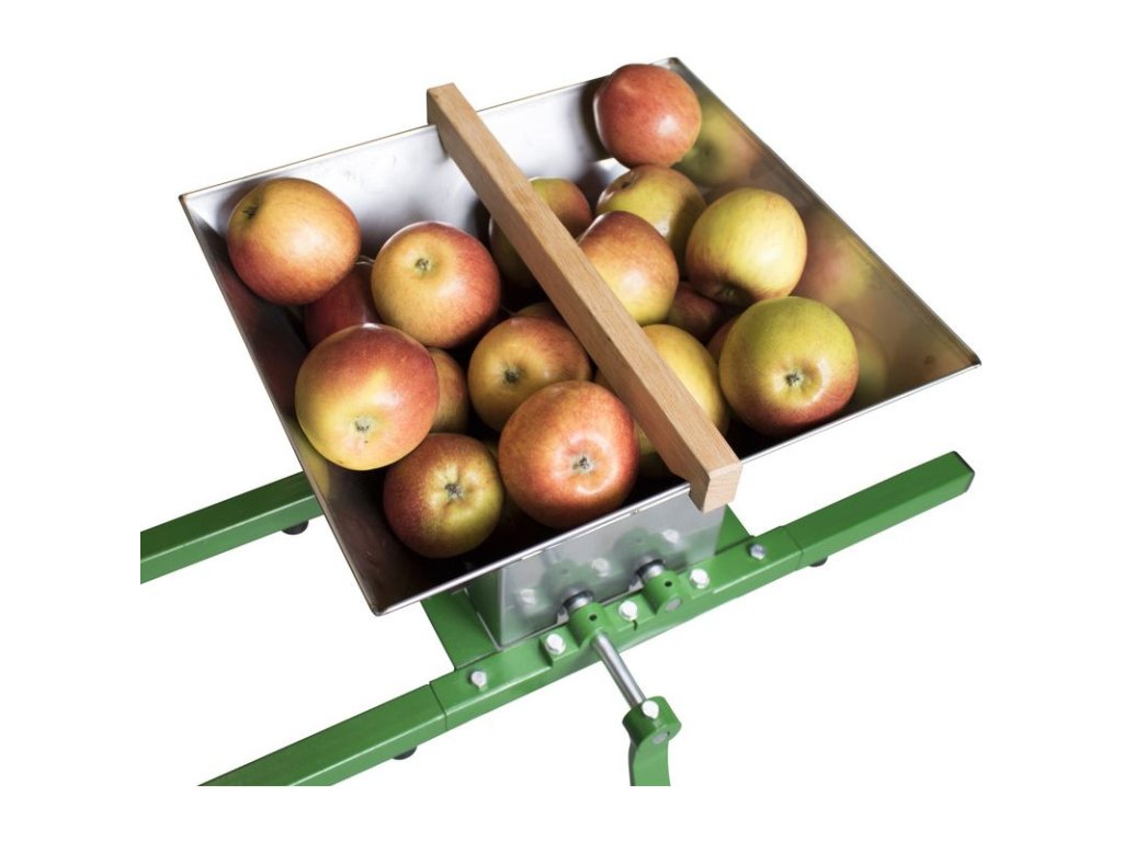 Mlynček na ovocie s manuálnym pohonom a nehrdzavejúcou násypkou. Rezací mechanizmus z hliníka. Určený na všetky druhy ovocia.