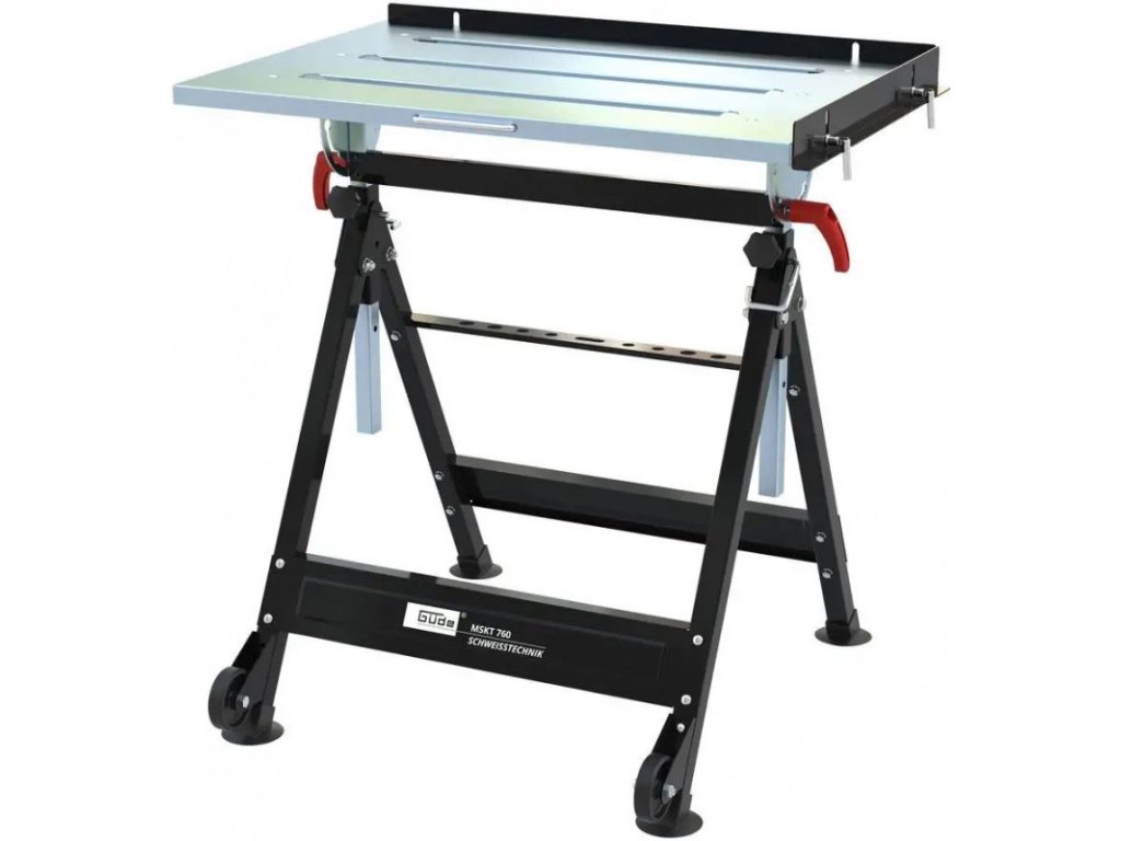 Univerzálny stôl na mnohostranné použitie, ktorý by nemal chýbať v žiadnej domácej ani remeselníckej dielni. Môže byť použitý ako mobilný stôl, ako zvárací alebo pracovný stôl, ale tiež ako stôl stroja. Skladací a ľahko prenosný vďaka dvom kvalitným transportným kolieskam a pohodlnej rukoväti. Stôl je možné rýchlo a jednoducho nastaviť do štyroch rôznych pracovných výšok (780/830/880/930 mm) a dá sa obojstranne otočiť o 90°. Tento inovatívny a dokonale premyslený dielenský stôl dopĺňa lišta na odkladanie skrutkovačov a iných nástrojov. Stôl sa dá po dokončení práce sklopiť, a tak šetrí priestor. Pozinkovaná pracovná plošina, výškovo nastaviteľný bočný a pozdĺžny doraz.
