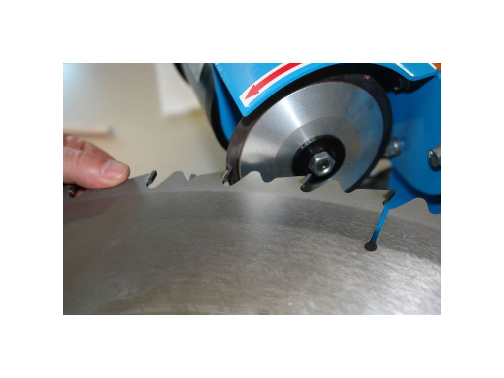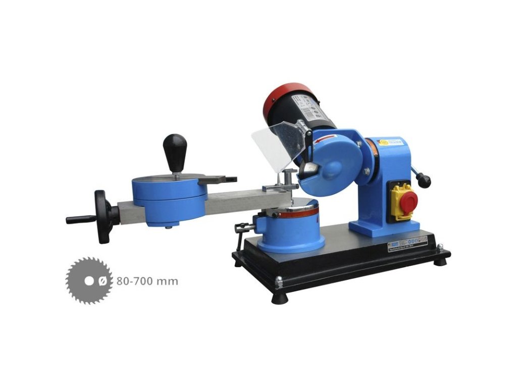 Ostrička na ostrenie tvrdokovových a CV pílových kotúčov priemeru 80 - 700 mm. Osem adaptérov pre všetky bežné priemery otvoru kotúča. Diamantový brúsny kotúč Ø125x32x10 mm pre tvrdokovové kotúče.