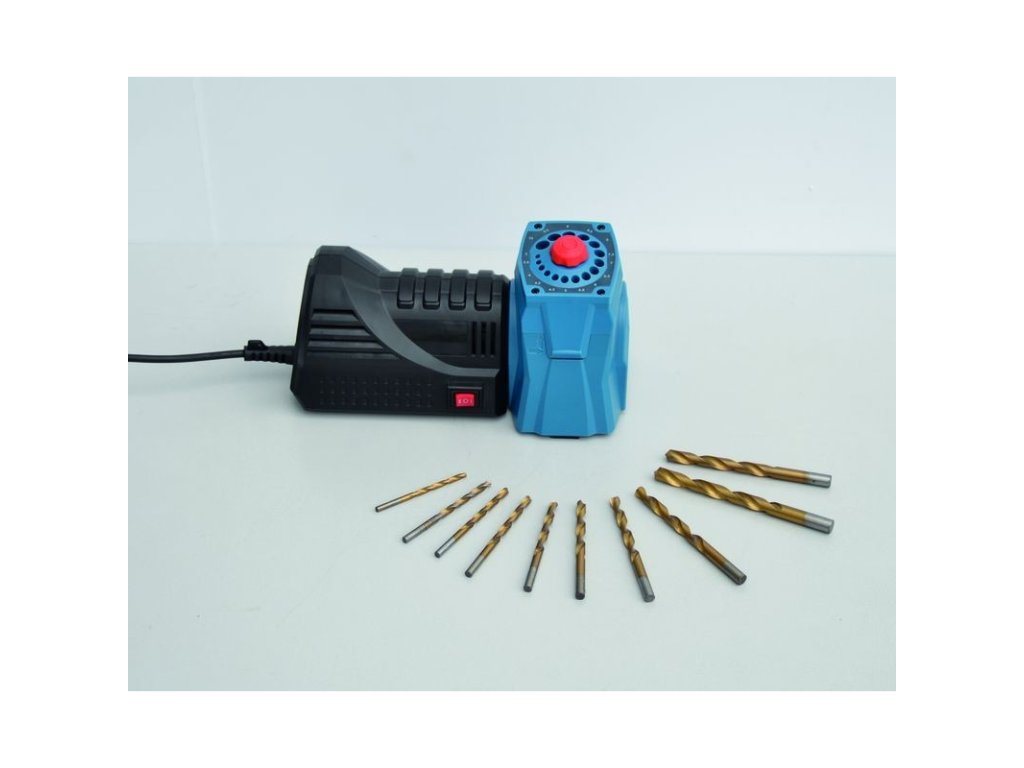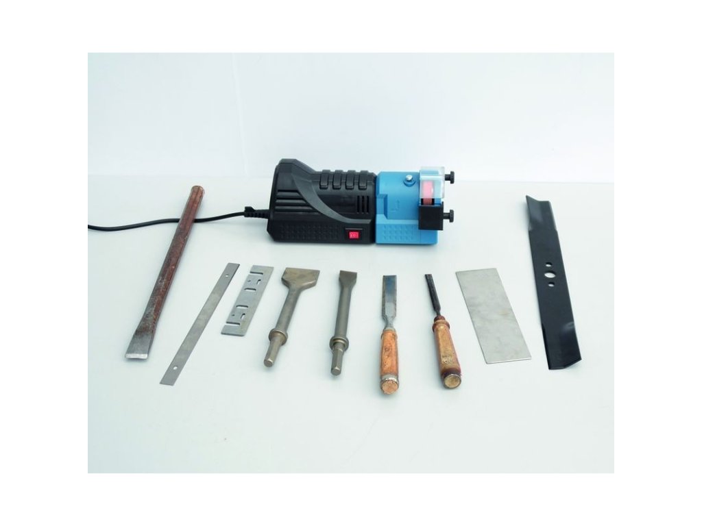 Univerzálna ostrička na brúsenie nožníc, vrtákov, nožov, dlát, sekier, skrutkovačov. Modul 1 - brúska / Modul 2 - ostrička nožov / Modul 3 - ostrička vrtákov (na vrtáky 3 - 10 mm).