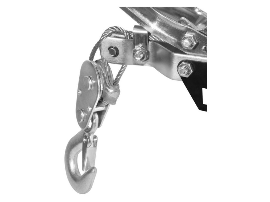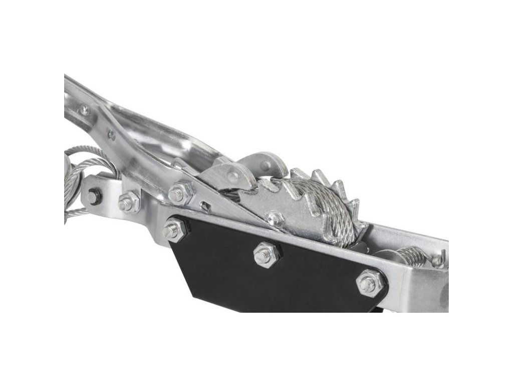 Pákový navijak s pozinkovanou oceľovou konštrukciou, 1 bezpečnostný hák s poistkou, 2-násobne poistená račňa, 3-násobne nitovaná páka, kladka, pogumovaná rukoväť, vhodný na ťahanie, napínanie plotov alebo vyslobodzovanie zapadnutých vozidiel. Nie je vhodný na zdvíhanie bremien.
