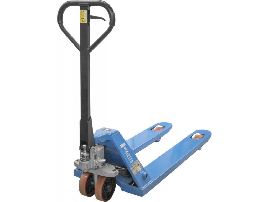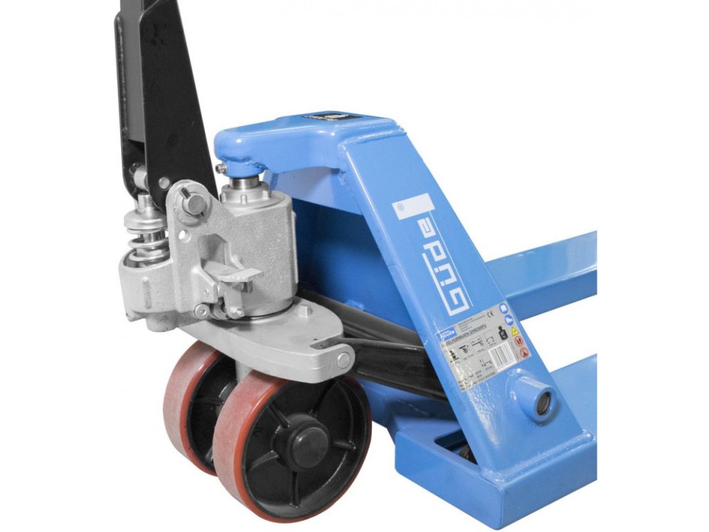Paletový vozík pomáha pri preprave nákladov v sklade alebo v dielni. Jeho stabilná zostava s oceľovou konštrukciou odolnou voči skrúteniu a stĺpikom riadenia otočným o 180° zaisťuje malý polomer otáčania. Nosnosť paletového vozíka je 2500 kg. Funkcia zdvíhania sa vykonáva pomocou oja s ovládaním ventilu. Funkciu spustenia je možné vyvolať na rukoväti a dodatočne na integrovanom nožnom pedáli. Polyuretánové kolesá zaisťujú tichý chod na tvrdých podlahách. Kĺbovo uložené tandemové zaťažovacie kolieska, pomocné nábehové valčeky na naloženie palety zboku.