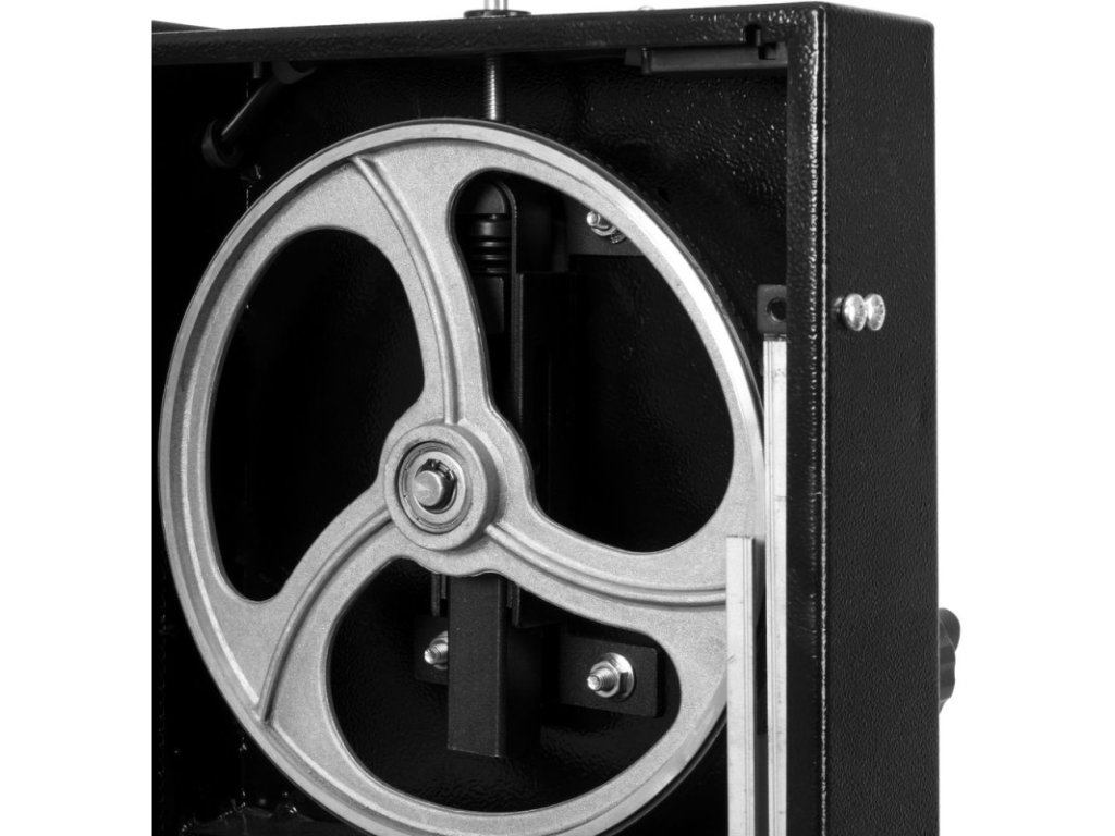 Pásová píla je presná, s nízkymi vibráciami a perfektná pre jemné práce s drevom. Kovové puzdro, hliníkové kladky pílového pásu. Hliníkový stôl výkyvný do 45°, pevný stojan s otvormi pre montáž na stôl, kovový kryt. Spínač nulového napätia, pozdĺžny a pokosový doraz. Prípojka pre odsávací systém s priemerom 49/75/100 mm.