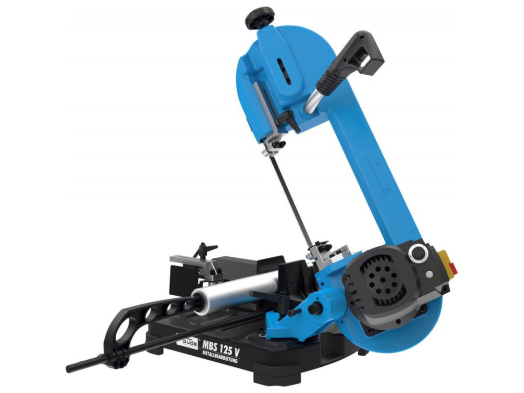 Pásová píla so stabilnou konštrukciou odolnou voči skrúteniu. Presné vedenie pásky s guľôčkovým ložiskom, otočná hlava stroja. Uhlové rezy od 0° - 60°. Potenciometer pre nastavenie variabilných otáčok pílového kotúča. Zarážka materiálu, zverák, stupňová stupnica 0° - 60°. Bezpečnosť pri preprave, pílový pás.