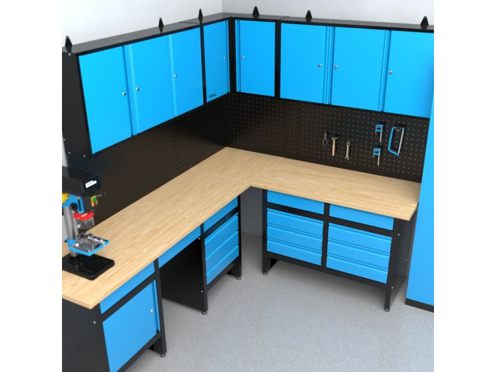 Dvojdielna rohová perforovaná stena je súčasťou dômyselného a veľmi jednoduchého doplnku Eco Line. Vyrobená na mieru umožňuje optimálne využitie rohu miestnosti – predovšetkým v kombinácii so zodpovedajúcou rohovou nástennou skrinkou a rohovou doskou na spojenie dvoch pracovných stolov. Takto jednoducho premeníte často nevyužitý priestor na ďalšiu pracovnú a úložnú plochu. Dve rovnaké perforované steny na presnú rohovú montáž. Oceľový plech s práškovou povrchovou úpravou. Vhodné sú všetky držiaky nástrojov a háčiky pre perforované steny a systémy so štvorcovou perforáciou 10 x 10 / 9 x 9.
