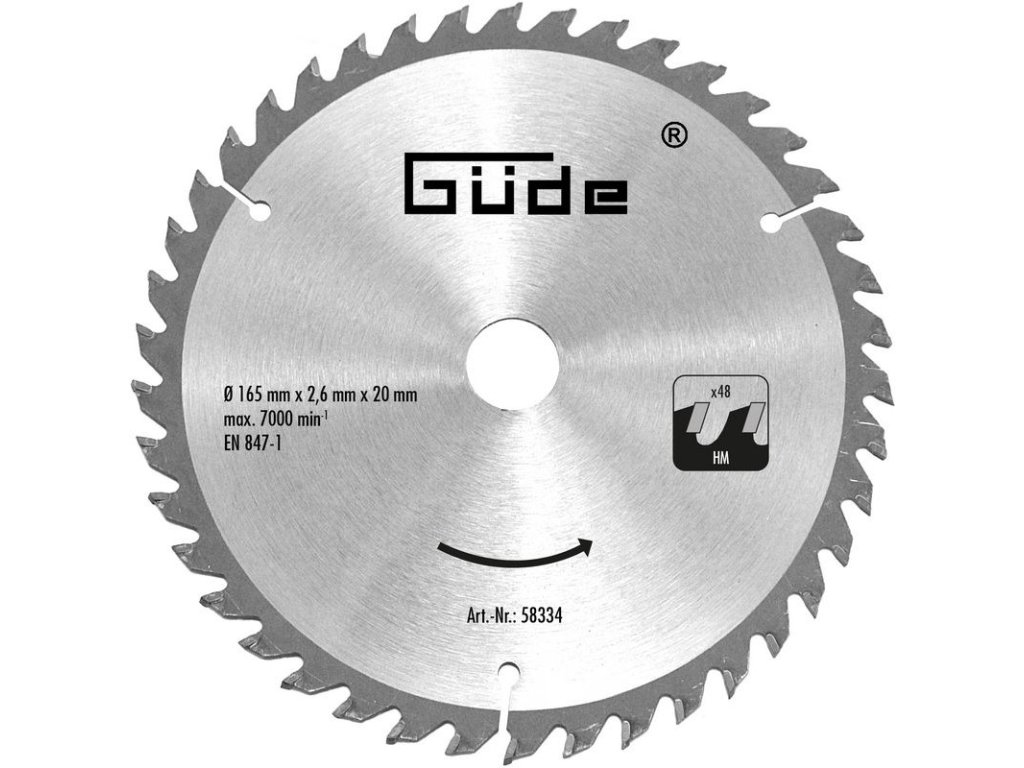 Pílový kotúč do ponorných a okružných píl vhodný na rezanie masívneho dreva, drevotriesky, MDF dosiek. Vhodný ku Ponornej píle TS 57-1200 SET (kód tovaru: 58138), ku Ponornej píle Güde TS 57-1400 KE SET (kód tovaru: 58232), k Aku okružnej píle KS 20-201-24 (kód tovaru: 58811).