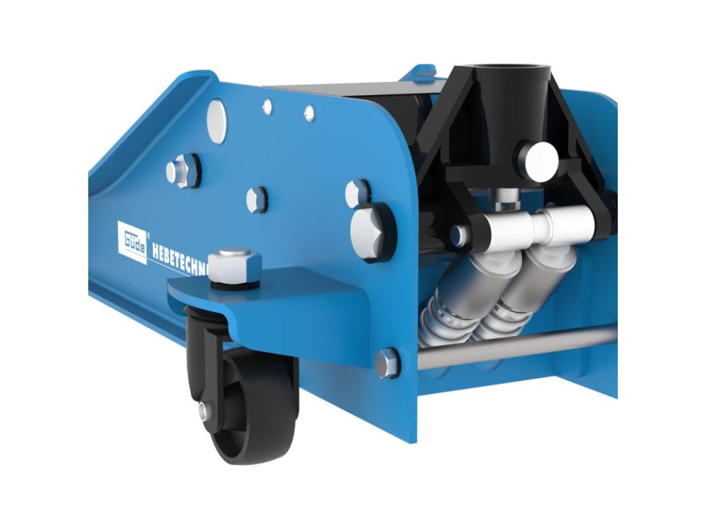 Pojazdný hydraulický zdvihák pre využitie v dielňach, garážach. Dva otočné a dva pevné kolieska. Systém dvojitého valca pre až o 50 % rýchlejšie zdvíhanie. Mimoriadne nízka svetlá výška ideálna pre znížené vozidlá. Gumená podložka na ochranu spodnej časti vozidla. Tyč čerpadla s penou chráni karosériu vozidla pred poškodením a poškriabaním.