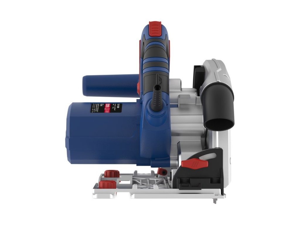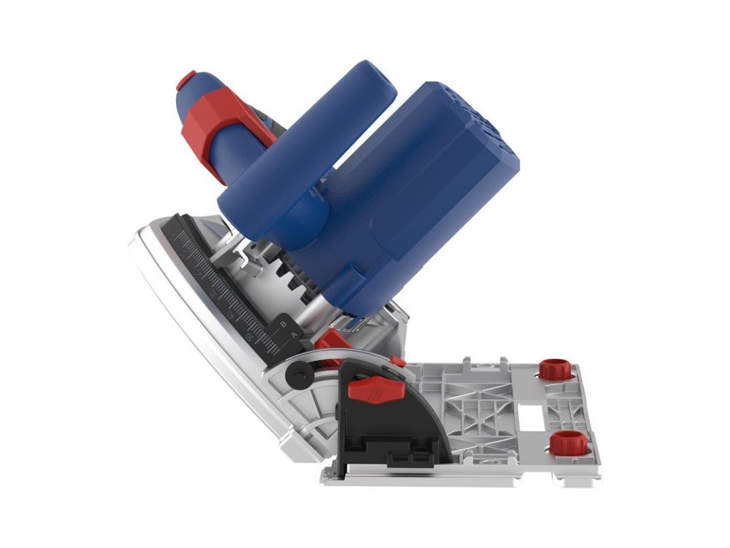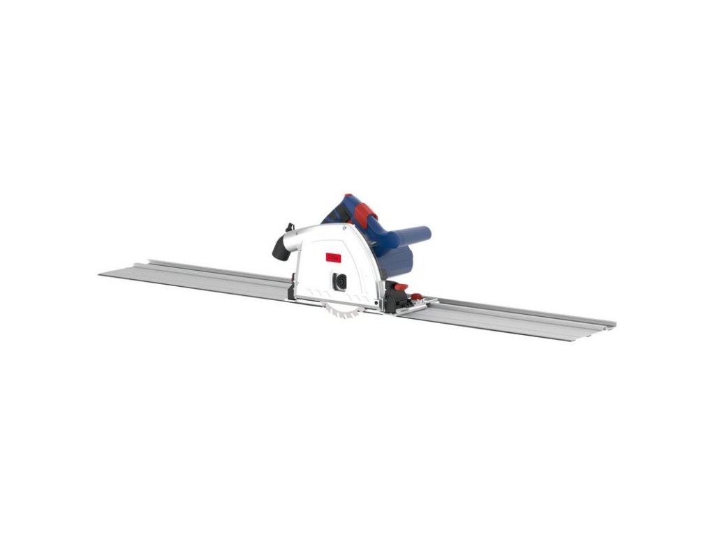 Ponorná píla s vodiacimi lištami a paralelným hĺbkovým mechanizmom pre presné pozdĺžne a šikmé rezy. Plochý kryt umožňuje rezanie aj v tesnej blízkosti stien (15 mm). Nastavenie rezných uhlov od 0° do +47°. Plynulé nastavenie hĺbky rezu. Aretácia pílového kotúča. Bezpečnostný vypínač s blokovaním zapnutia. Nastavovacie skrutky pre presné nastavenie. Protišmyková rukoväť s mäkkým povrchom. Prípojka na odsávanie prachu. Vhodná na vytvorenie dilatačných škár v podlahách, presné ponorné rezy, rezanie sadrokartónu. 1 x HM pílový kotúč 24 zubov, 2 x vodiaca lišta 700 mm, 1 x spojka lišty, 2 x svorka.