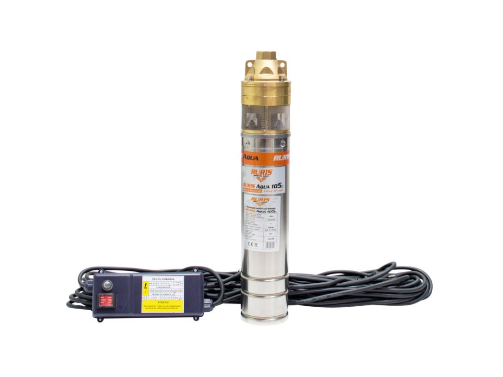 Ponorné čerpadlo RURIS Aqua 105 je vyrobené z nehrdzavejúcej ocele, s motorom so 100% medenným vinutím, v olejovom kúpeli. Ide o 3-stupňové turbínové čerpadlo s prietokom 45 l/min. Toto čerpadlo je vhodné na prečerpávanie čistej vody zo studní vŕtaných do hĺbky až 140 m, napájanie malých závlahových systémov alebo rôznych domácností.