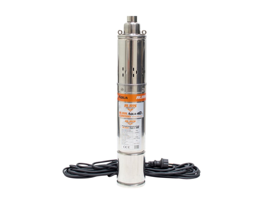 Ponorné čerpadlo RURIS Aqua 40 je hĺbkové čerpadlo, ktoré sa používa na dodávku čistej vody do domácností alebo rôznych spotrebiteľov ako sú zavlažovacie systémy. Vodu je možné čerpať zo studní z hĺbky až 100m. Motor čerpadla je 750W so 100% medeným vinutím a konštrukcia čerpadla je skrutkového typu.