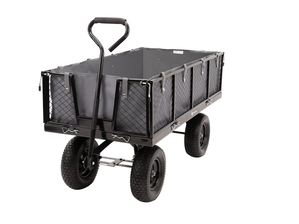 Vytvorte dodatočný nákladný priestor odstránením alebo sklopením bočných panelov. Vďaka flexibilným bočným stenám sa záhradný vozík vždy dokonale prispôsobí vašim individuálnym potrebám.