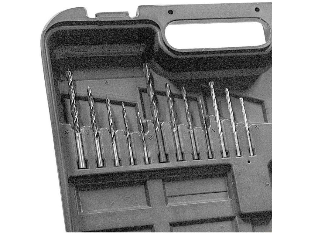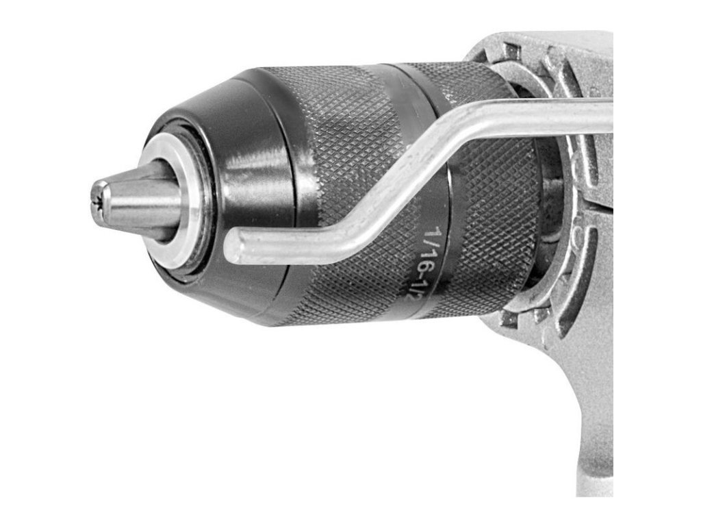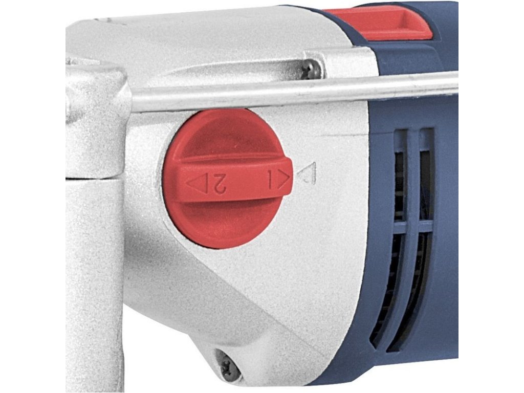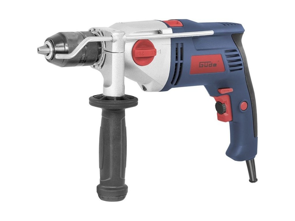 Príklepová vŕtačka zo série elektrického náradia Q9. Dvojstupňová prevodovka, plynulá regulácia otáčok, ľavý / pravý chod. Uzamykateľný spínač pre nepretržitú prevádzku. Robustné kovové puzdro prevodovky, kovové rýchloupínacie skľučovadlo bez náradia. Mäkká rukoväť, odnímateľná kovová prídavná rukoväť (vhodná pre pravákov aj ľavákov). Stabilný nastaviteľný hĺbkový doraz. Kufor s kovovými sponami, vrtáky do dreva Ø 3/4/5/6/8, HM vrtáky do kameňa Ø 4/5/6, vrtáky do kovu HSS Ø 4/5/6/8.