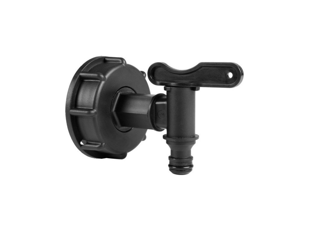 Pripojenie s ventilom pre nádrž na dažďovú vodu 1000 l 60x6 Kód produktu : 52-555 kvalitná prípojka s guľovým ventilom určená na montáž na nádrže na dažďovú vodu, sudy, kanistre alebo Mausery. zabraňuje úniku vody z suda IBC konektor s vnútorným závitom S60x6 (2x3/4") pripojenie vonkajším závitom 3/4" (19mm) vyrobené z odolného plastu vysoká tesnosť a odolnosťDodatočné parametre