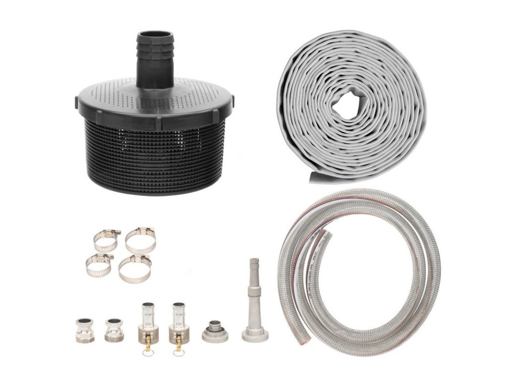 Sada pozostáva z nasávacej hadice 1 1/2" 3 m, tlakovej hadice 1 1/2" 7 m, nasávacieho koša, hadicových spôn, ostrekovacej trysky, rýchlouzáveru, rýchlospojky.